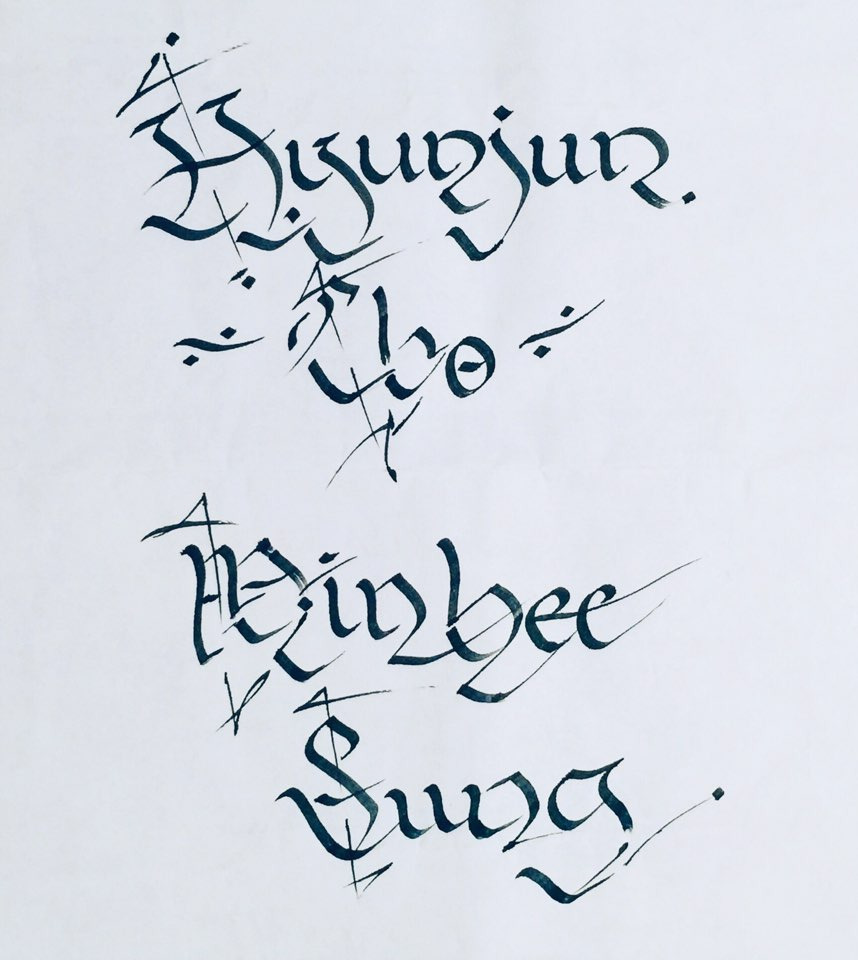 그리고는 자기는 켈트어로 글씨를 쓰는 사람이라면서 나와 그녀의 이름을 물어봤다. 그리고 그는 우리 이름을 라이언에어 보딩패스를 출력한 종이에 셀틱 알파벳으로 근사하게 써서 선물해줬다.