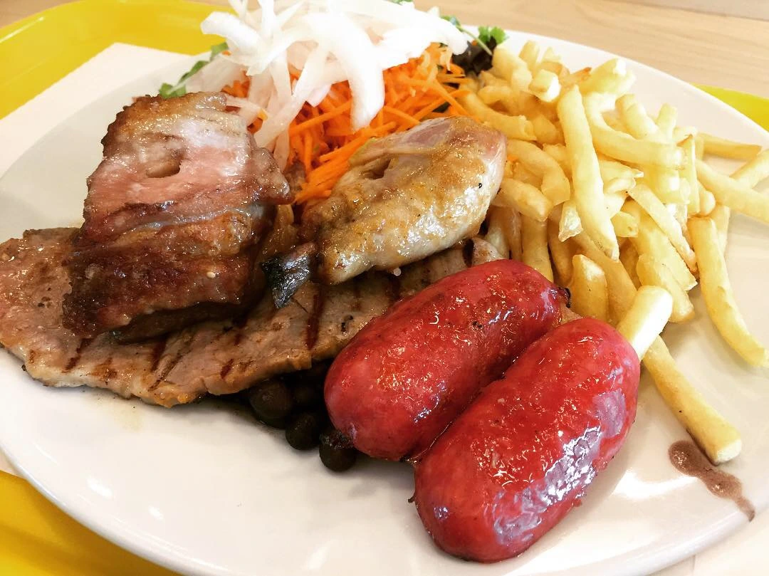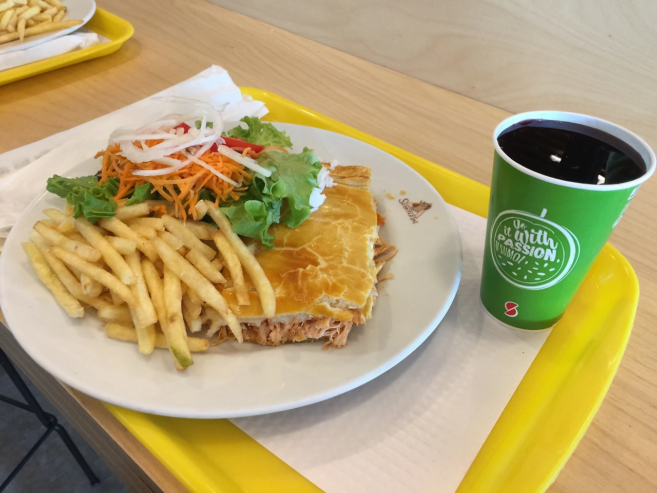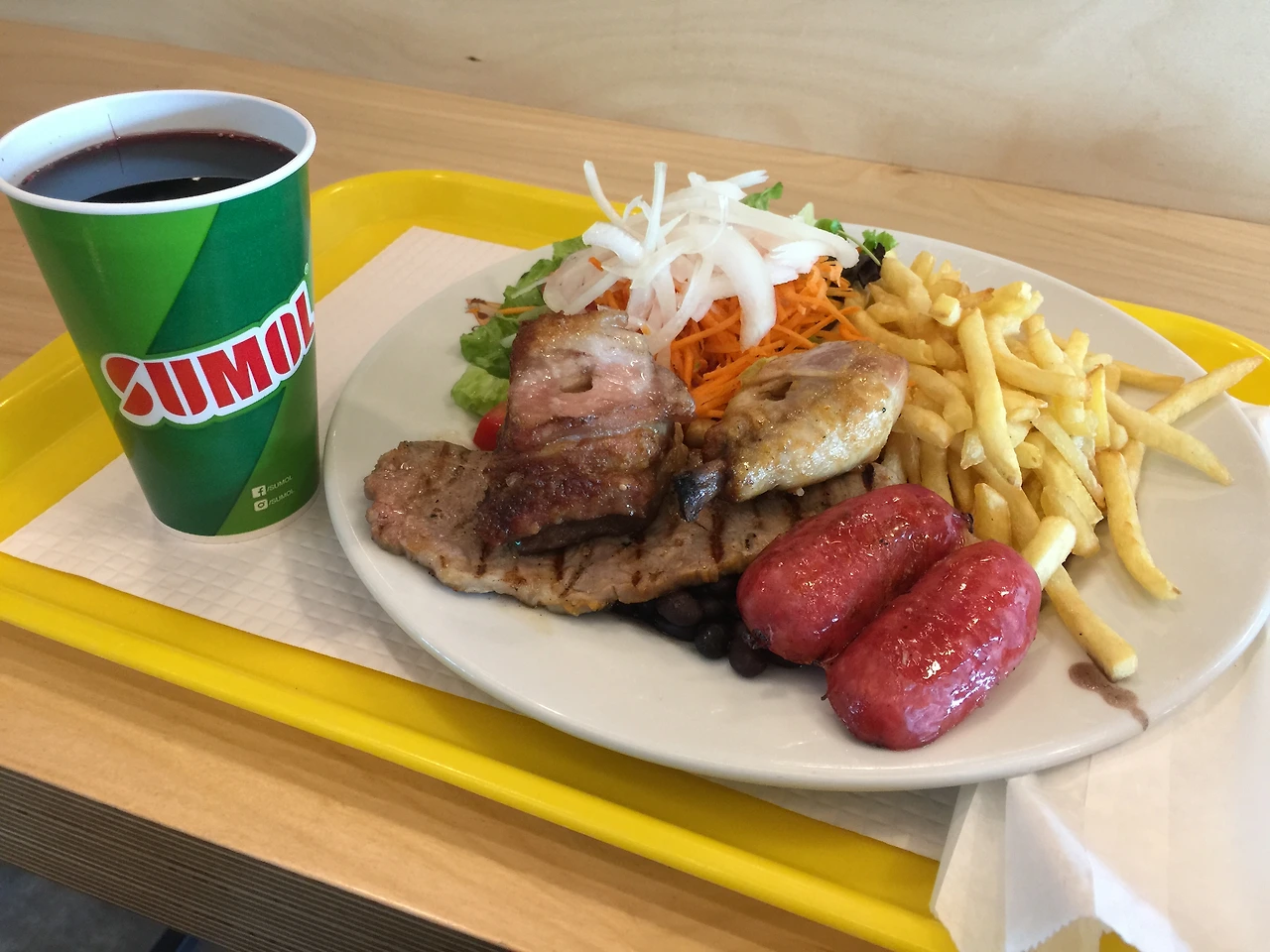 주문은 성공했고, 그 다음은 옆에서 음식을 받아가야 하는데, 그냥 주지 않고 물어보는게 참 많다. 감자튀김 줄까? 밥 줄까? 샐러드는 뭐가 좋아? 등등 주는대로 먹는 밥에 익숙한 우리에게 뭘 잔뜩 고르는 것도 생소한데, 포르투갈어로 자꾸 뭘 물어보니 난감했지만 음식들이 쇼케이스에 보이게 진열되어 있어서 손짓과 고개짓으로 겨우 주문할 수 있었다.