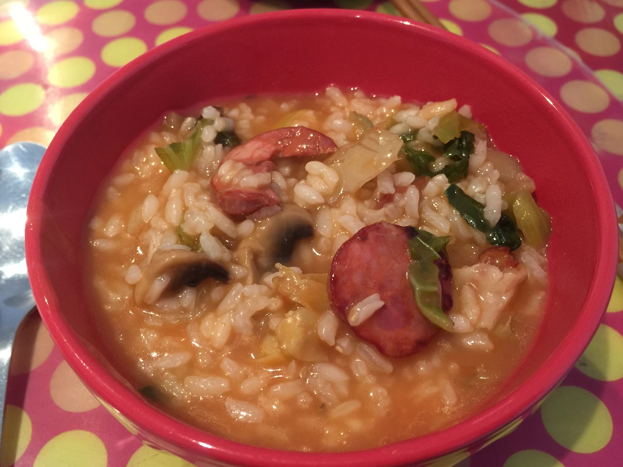눈을 비비며 일어나서는 문에 달린 창문으로 내다본 그녀가 내게 빗방울 소식을 전해줬다. 아침으로 초리쏘와 수프채소, 쌀을 넣고 죽을 끓여 먹었다.