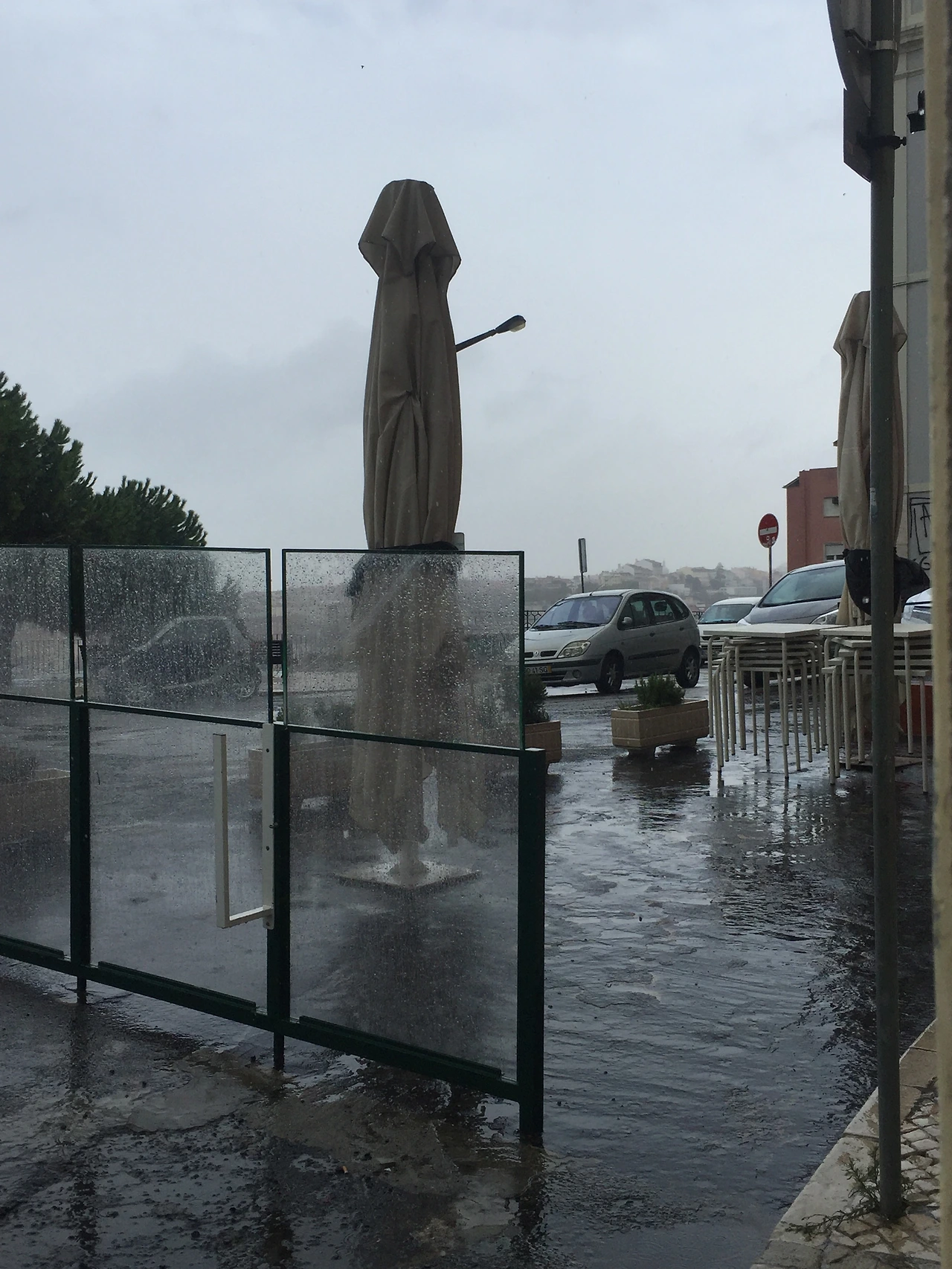 어제에 이어 오늘까지 집에 있자니 답답한 기분이 들었다. 리스본에 있는 우리 집은 위치가 좋은 대신에 매우 좁기 때문에 둘이서 하루종일 한 공간에 있다보면 답답함을 느끼게 된다. 밖으로 나가보고 싶었는데 생각보다 비가 세차게 내린다. 냉장고에 먹을 것도 별로 없어서 멀리가지 않더라도 슈퍼에 가서 장이라도 봐야 하기 때문에, 하루종일 비가 잦아들기만을 기다렸다. 그런데 비는 그칠 생각이 없고, 늦은 오후가 되자 빗줄기가 약간 가늘어지긴 했다.