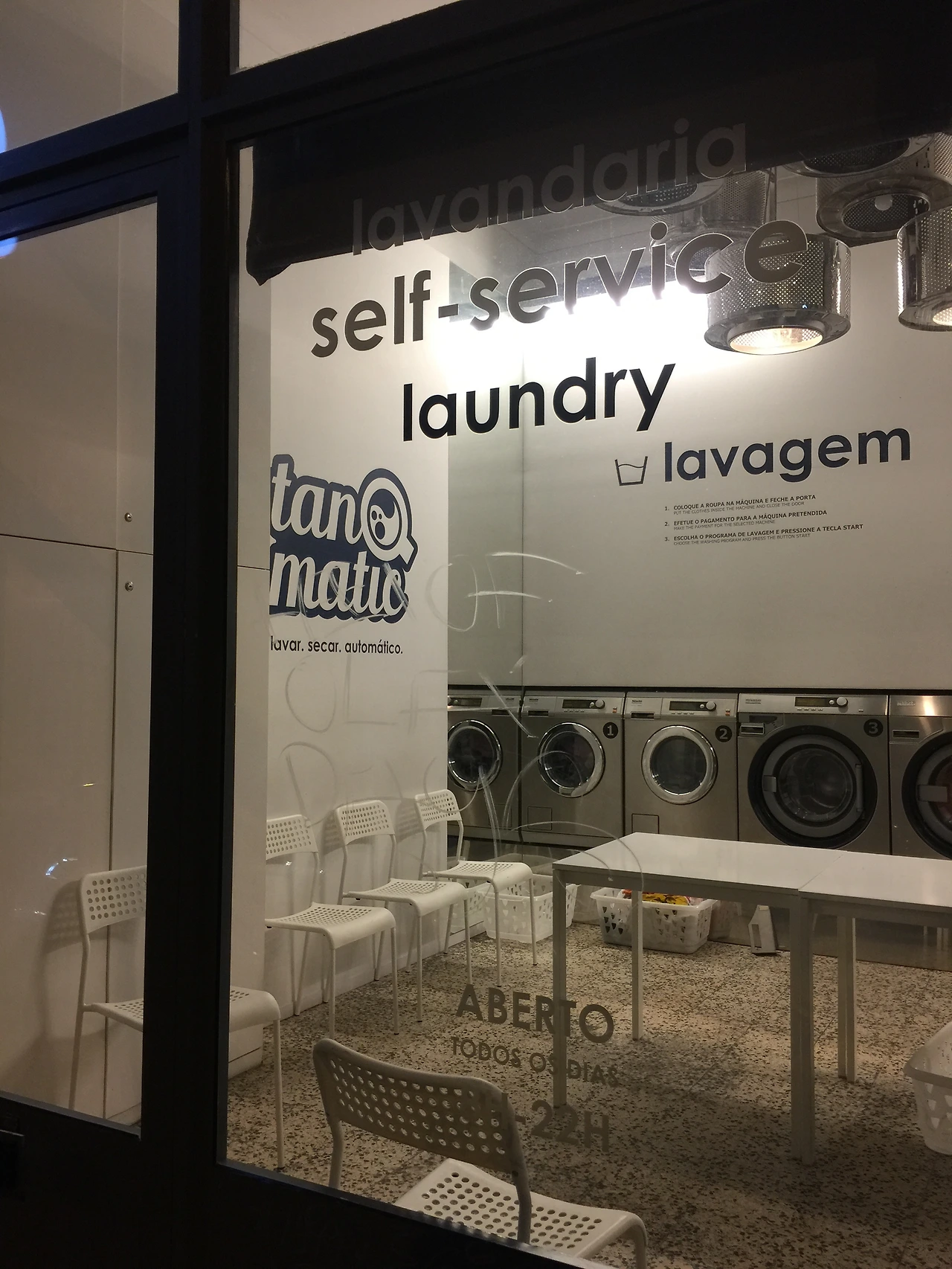 세탁물들을 챙겨든 우리는, 발걸음도 가볍게 평소 호기심에 기웃거리던 동네 코인세탁소로 향했다. 그리고 처음이라 조금은 두근거리는 마음으로, 하지만 뭔가 재미있을 거라는 기대감을 잔뜩 안고 세탁소 안으로 들어섰다. 으음…… 그런데 빈 세탁기가 없다. 가운데 커다란 테이블이 놓인 세탁소 안에는 입구 건너편 긴 벽에 드럼세탁기들이 줄지어 붙어있고, 입구 쪽 짧은 벽을 따라 커다란 건조기가 붙어있는 구조였다. 몇 개 있는 의자에는 서너 명이 이미 세탁기를 돌리고 있거나 혹은 다음 차례를 기다리고 있다. 그래서 첫 번째 시도는 일단 실패.