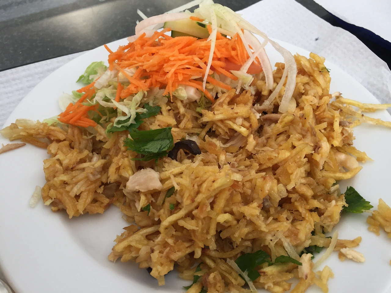 이윽고 음식이 나오고 볶음밥처럼 생긴 음식이 접시에 담겨나왔다. 쌀도 있고, 치킨도 있고, 심지어 감자튀김도 섞여있다. 밥에 감튀가 섞여있다니... 처음에 신기했는데 먹어보니 우리 입맛에도 아주 잘 맞았다. 역시 오길 잘했다고 생각하며 즐겁게 식사를 하고 있는데 가게에 점점 사람들이 많아진다. 식당에 앉아서 먹는 사람들도 있고, 포장해서 가는 사람들도 있고. 그런데 손님들이 주인아저씨와 모두 반갑게 인사를 한다. 정확하게 알아들을 수는 없지만 아저씨가 메뉴에 대해 말해주는 것을 보니, 오늘은 메뉴가 뭐냐 물어보고 대답하는 것 같았다. 아마도 단골들이 많이 찾는 식당 같았다. 식당에 들어온 사람들의 신기한 시선을 받으며 점심을 먹고 있는데, 그들의 생활 속에 녹아든 느낌이 들었다.