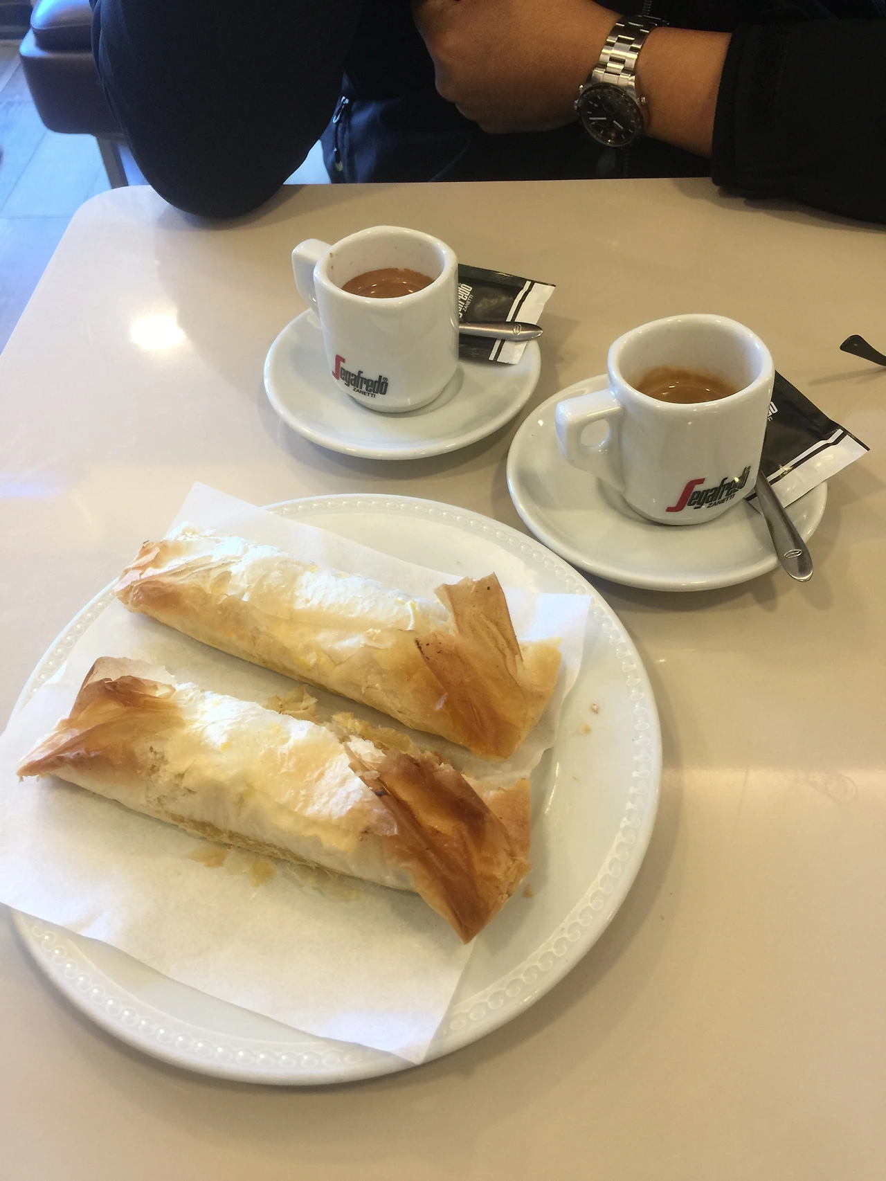 “열차 타기 전에 카페 콘 레체Café com leite라도 마시려 했는데…….”