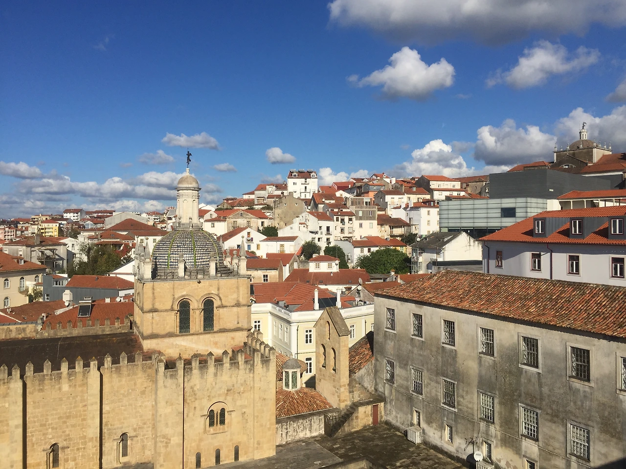 코임브라 대학교는 산꼭대기에 있다. 그리고 이곳에서도 가장 오래된 구역은, 일명 ‘학교의 안뜰Pátio das Escolas’이라고 부르는 커다란 마당과 그 주변에 배치된 건물들로 구성되어 있다. 북동쪽에 위치한 ‘철의 입구Porta Férrea’라는 이름의 출입구를 통해 들어서면, 북쪽에 왕궁으로 사용되었다가 이제는 박물관으로 사용되는 ‘왕의 궁전Paço Real’ 건물이 있다. 북서쪽에는 ‘대학교탑Torre da Universidade de Coimbra’이라고 부르는 시계탑이 있다.