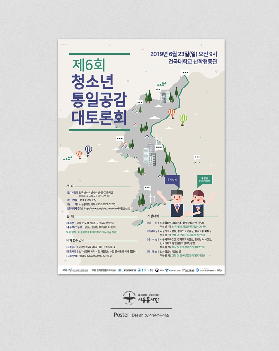 청소년, 통일, 토론이라는 키워드에 맞게 일러스트로 구성하고,