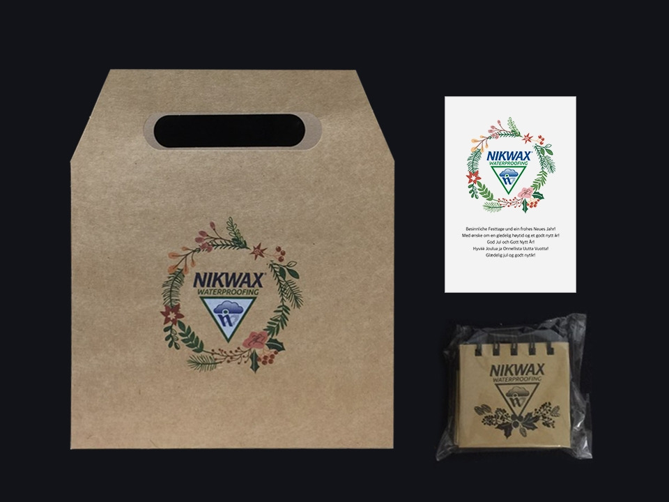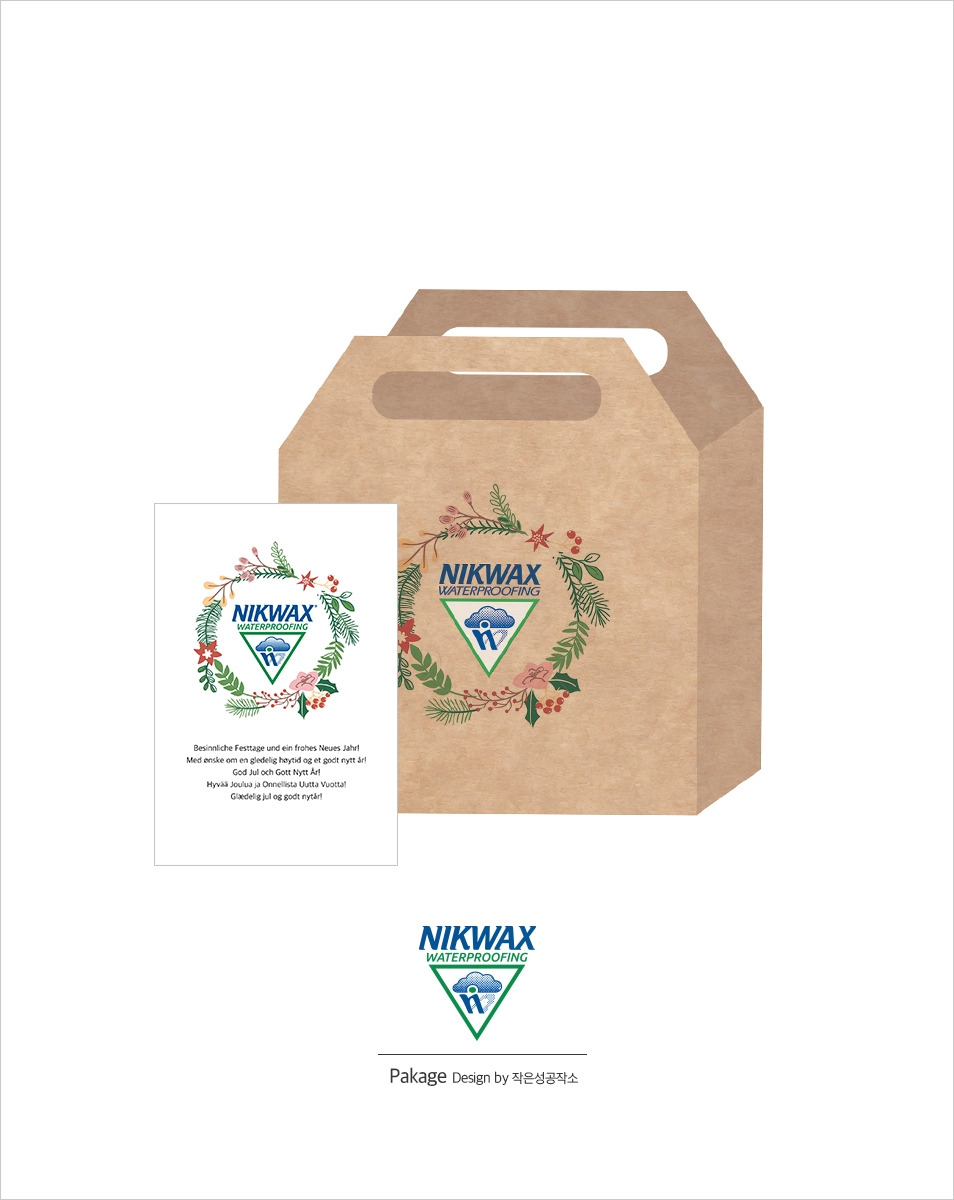 영국에 본사를 두고 있는 친환경 기능성 세제 브랜드 닉왁스(Nikwax)의 크리스마스 패키지 작업