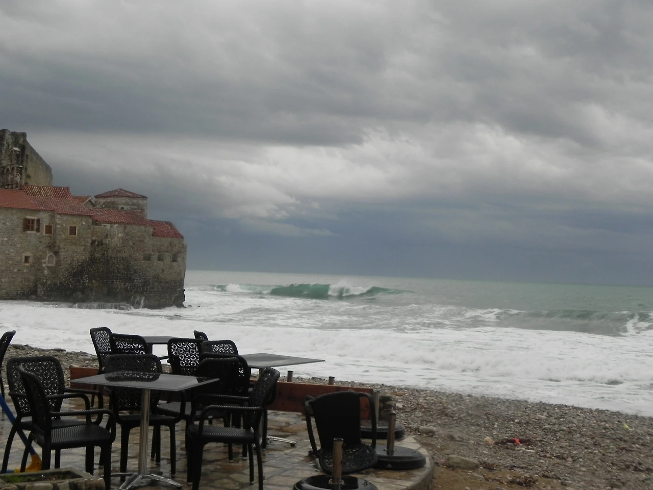 산책 삼아 부드바 올드타운을 향해 걷는데, 잔뜩 찌푸려져 있는 하늘과 성난 파도의 모습을 볼 수 있었다.