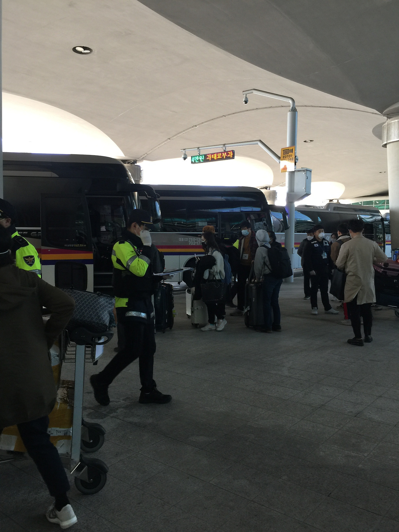 내가 한국에 도착한 날은 3월 22일 오후. 유럽발 입국자에 대한 특별입국절차가 시작된 바로 그 날이다. 공항에 도착하자마자 증상여부를 묻고 체온을 재는 기본적인 검역절차를 마치고, 코로나 검사를 위해 마련된 격리장소로 이동하기 위해 공항 앞에서 다른 사람들과 함께 버스에 올라탔다.
