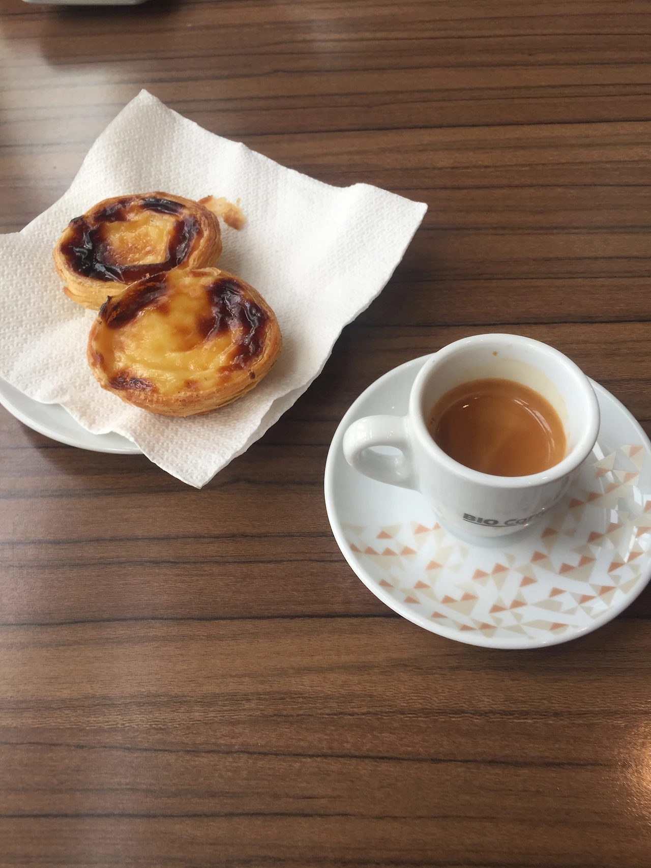 이곳도 에그타르트의 퀄리티가 상당히 뛰어났다. 딱딱하거나 질기지 않지만 매우 바삭한 여러 겹의 페스츄리가 먼저 느껴진 다음, 깊고 그윽한 단맛을 품은 커스타드, 포르투갈에서는 나타Nata라고 부르는 환상적인 커스타드 크림의 맛이 입안 전체를 감싸고 돈다. 여기에 에스프레소를 한 모금 마시면 깔끔하게 리셋, 다시 에그타르트의 첫맛을 온전히 느낄 준비가 끝난다. [고래군]