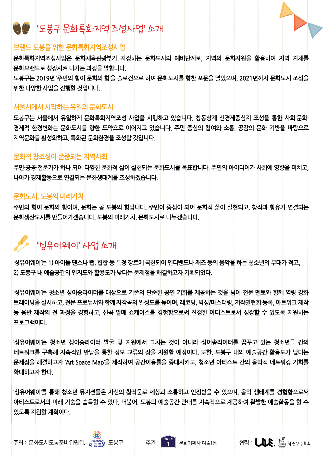 뒷면에는 싱유어웨이 프로젝트 설명을 담았다.