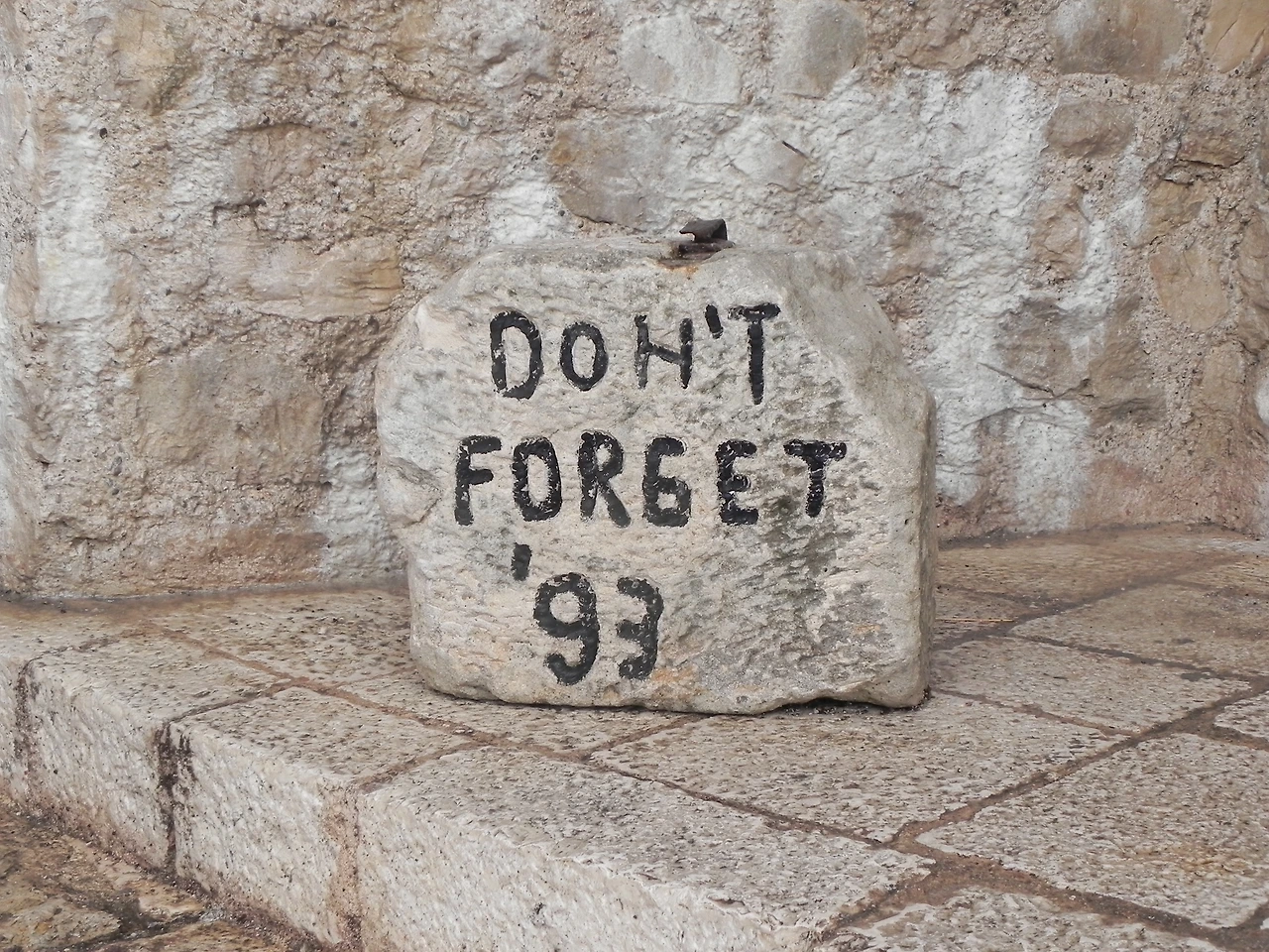 다리 자체도 멋지지만 다리를 둘러싸고 있는 올드타운과 물, 나무들이 어우러져 너무나도 멋진 풍경을 만들어내고 있었다. 다리 건너면 와닿는 글귀가 쓰인 돌을 만날 수 있다. 잊지말자, 1993년. (우리도 잊지 말자, 4월 16일) 스타리 모스트는 93년 내전당시 크로아티아 포병대에 의해 무너졌다고 한다.