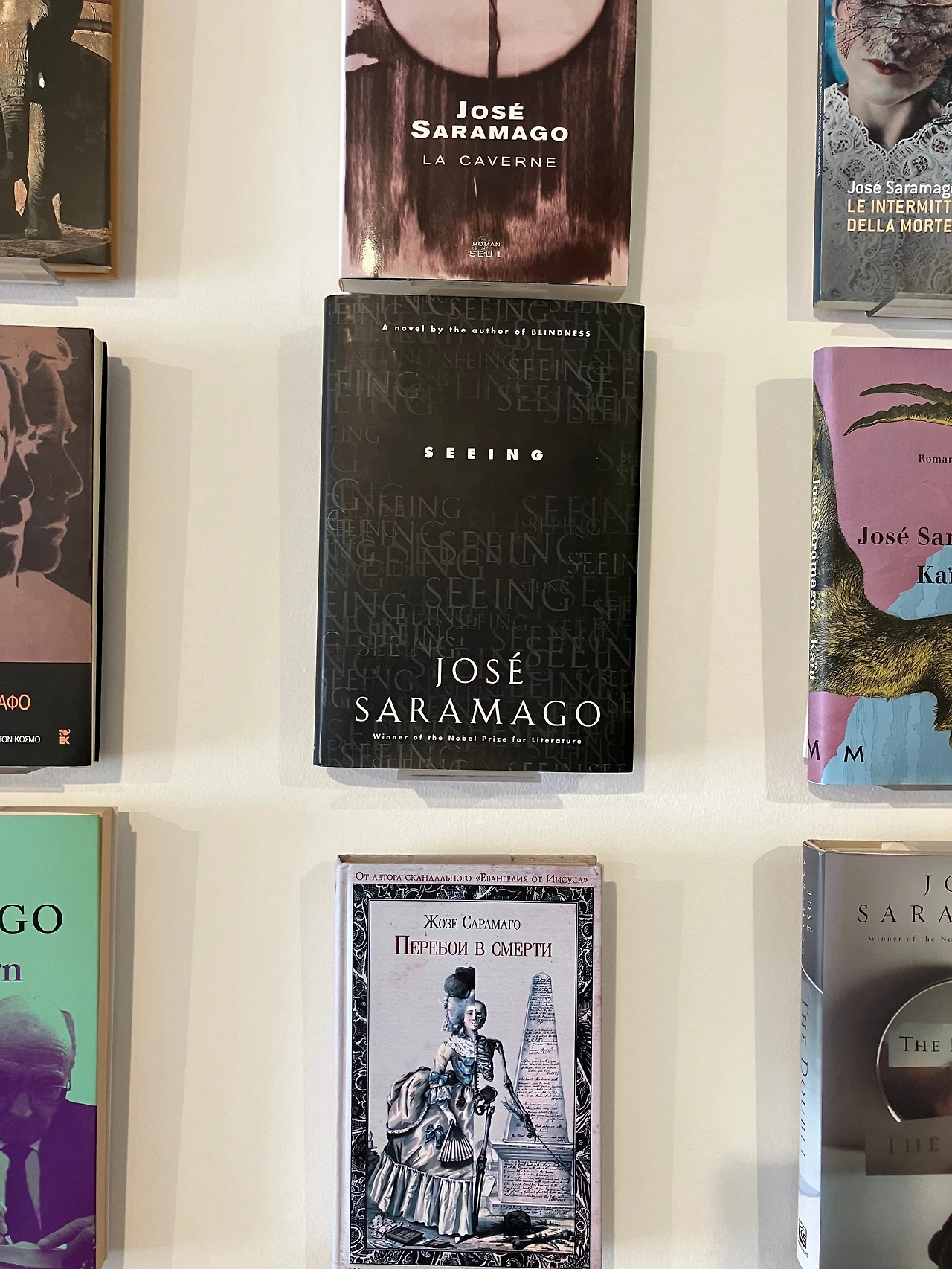 주제 사라마구 박물관에 전시 된 『눈뜬 자들의 도시』 한국어로도 같은 디자인으로 출판되어 있습니다. ⓒ미니고래