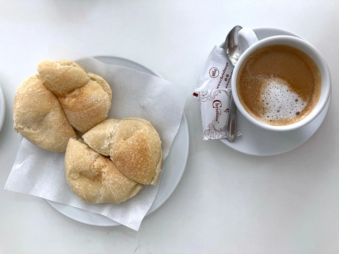 포르투갈을 여행하면 많은 것들이 1유로와 2유로 사이에서 머물게 된다. 가벼운 점심 내지는 간식으로 버터를 발라서 오븐에 데워주는 빵에 라떼 한 잔을 즐길 수 있다. 포르투갈을 대표하는 간식 '파스텔 드 나타'를 비롯한 다양한 디저트들도 보통 여기 가격대에 있기 마련인데, 약 0.2유로 정도를 추가해서 에스프레소 한 잔과 함께 세트로 주문할 수도 있다.
