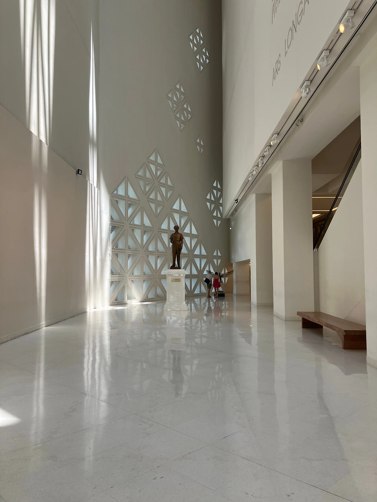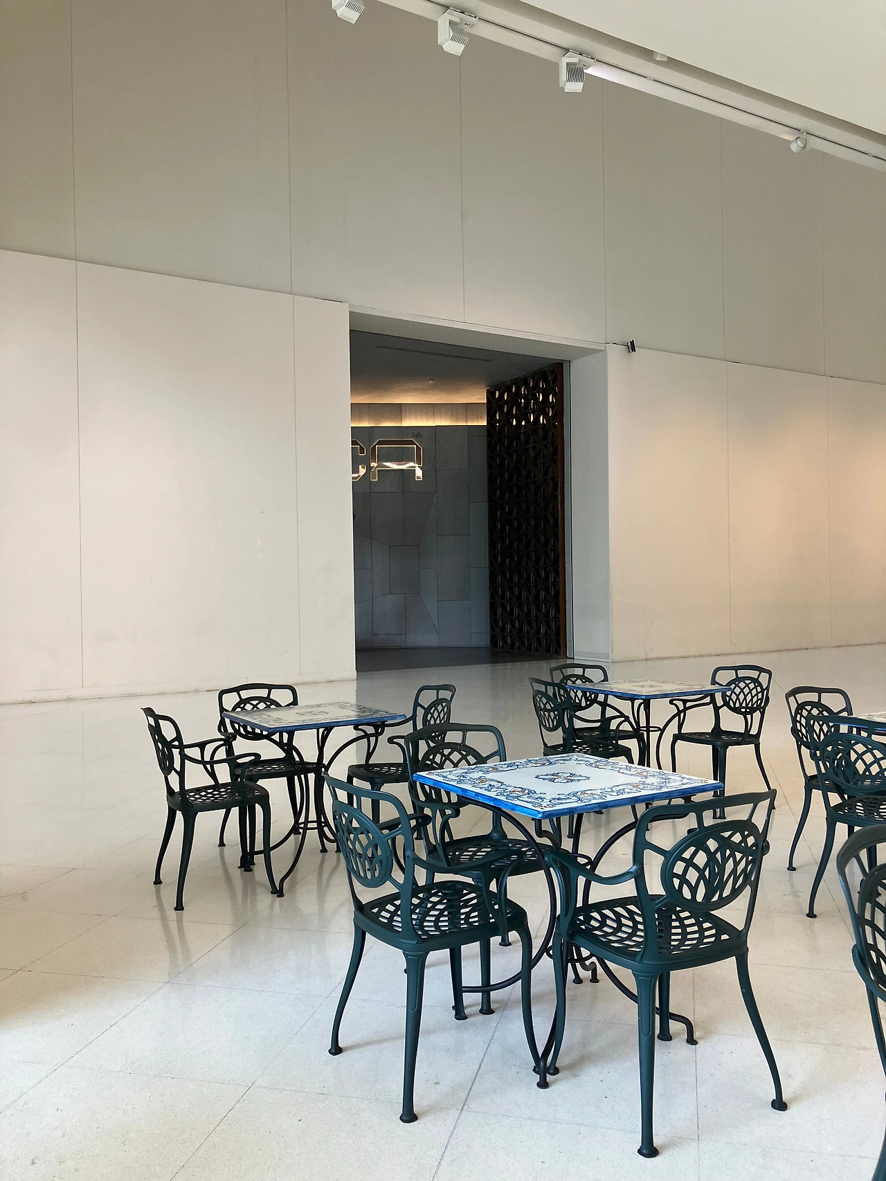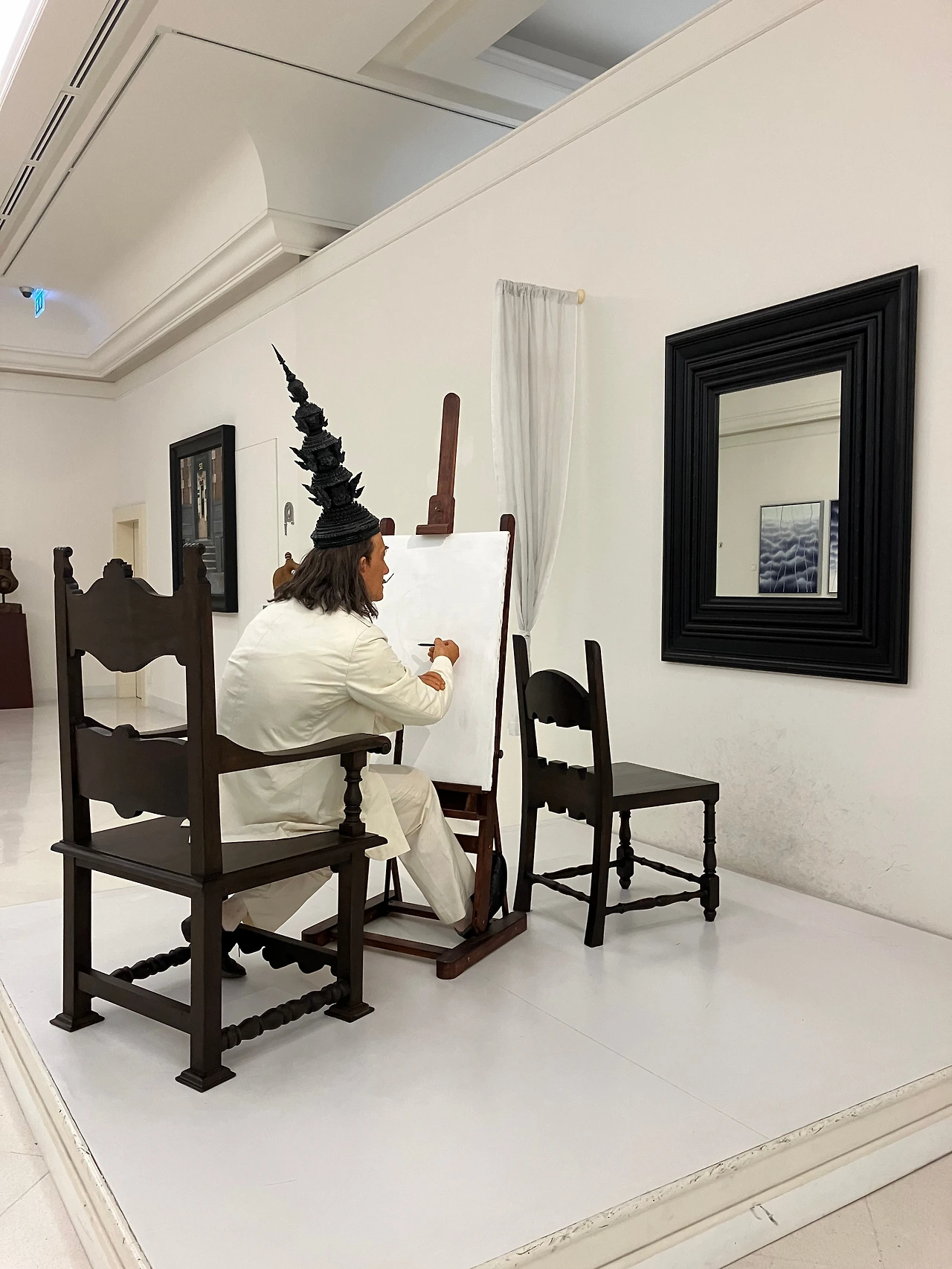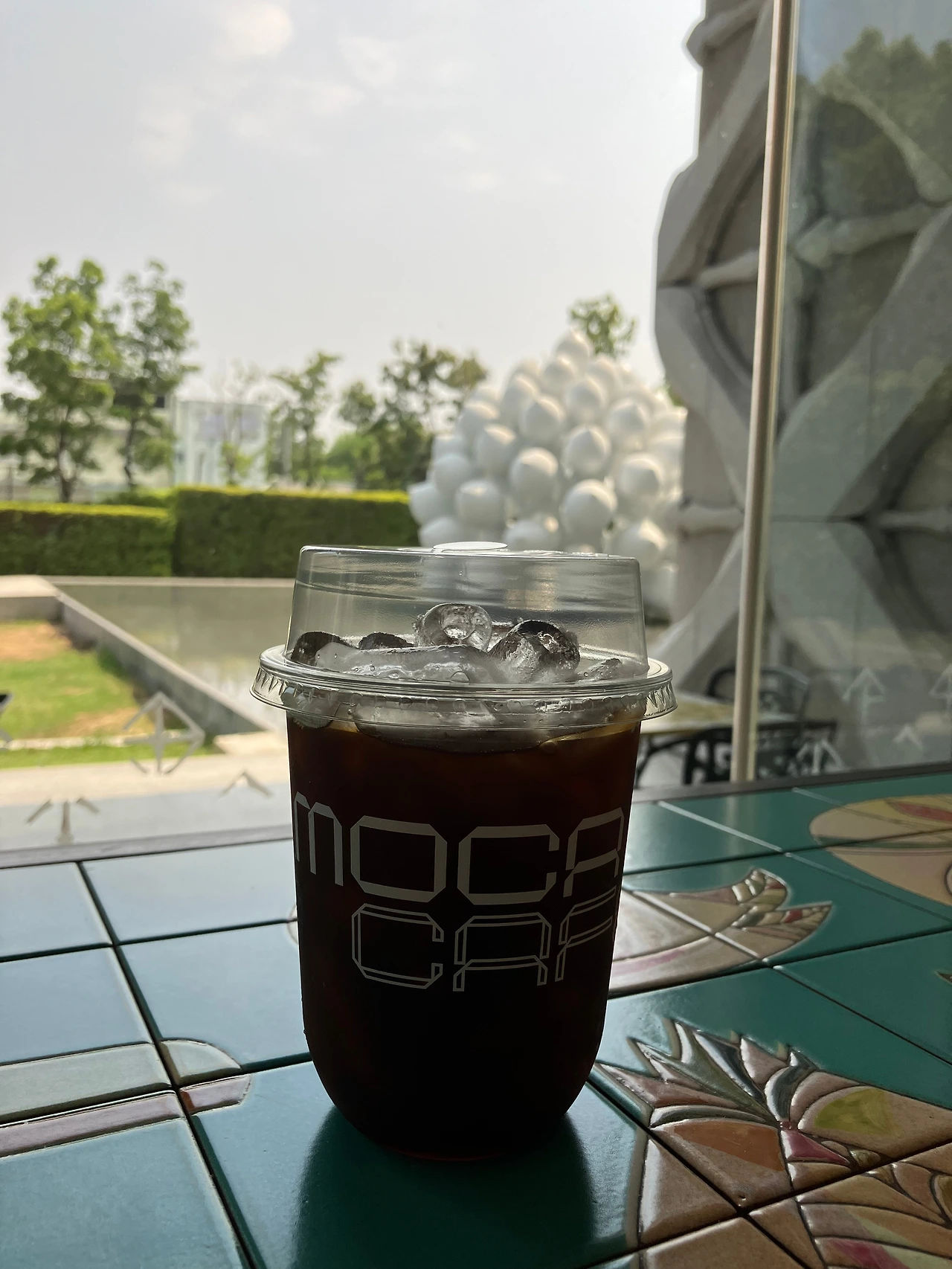 메고 있던 가방까지 맡기고 드디어 미술관에 입장! 밤비행기 이동으로 인한 피로에 갑자기 체감온도 45도에 육박하는 날씨로 이미 지칠대로 지쳐버린 나는, 미술관 카페에서 일단 커피부터 한 잔 마시기로 했다. 마치 사막에서 한줄기 빛처럼 나타난 생명수 한 모금이 아닐까 싶게 온 몸으로 스며드는 아이스 아메리카노(100밧)의 카페인 덕분에, 피곤한 몸과 마음을 조금이나마 추스릴 수 있었다. 카페 유리창을 통해 보이는 바깥 풍경이 꽤나 괜찮다. 그렇게 커피 한 잔의 휴식을 가지고 나서, 나는 드디어 미술관을 둘러보기로 했다.
