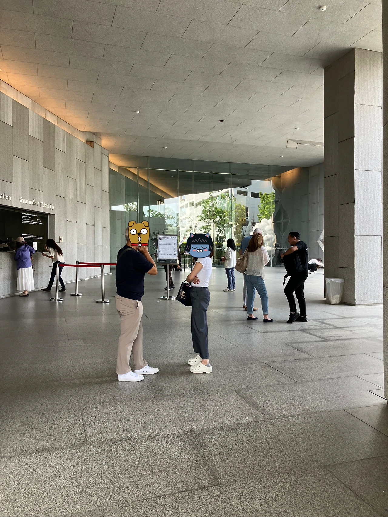 나의 그 날 일정은 이러했다. 밤비행기를 타고 이른 새벽 방콕에 도착했다. 체크인까지는 시간이 한참 남아있기 때문에, 일단 예약한 숙소에 짐을 보관해달라고 했다. 그리고 아직은 아침저녁으로 쌀쌀했던 한국 날씨에서 순식간에 방콕의 무더위 속으로 이동하자마자 버스를 두 번 갈아타는 여정을 다시 이어간 끝에, 미술관 오픈시간인 오전 10시(마감시간 오후 6시, 월요일 휴무) 전에 미술관 앞에 도착을 했다. 미술관 앞에는 이미 몇몇 사람들이 입장을 위해 기다리는 모습을 볼 수 있었다. 매표소도 외부에 따로 있었기 때문에, 나는 바깥 벤치에 앉아 오픈할 때까지 좀더 기다려야했다. 그리고 오픈 시간이 되자마자 매표소에서 티켓(350밧)을 끊고 드디어 미술관에 입장할 수 있었다. 사이즈가 큰 가방은 락커룸에 따로 맡겨야만 입장할 수 있다는 점을 참고할 것! 어차피 넓은 미술관 관람을 위해서는 가방이나 번거로운 짐 없이 홀가분하게 다니는 편이 좋다.