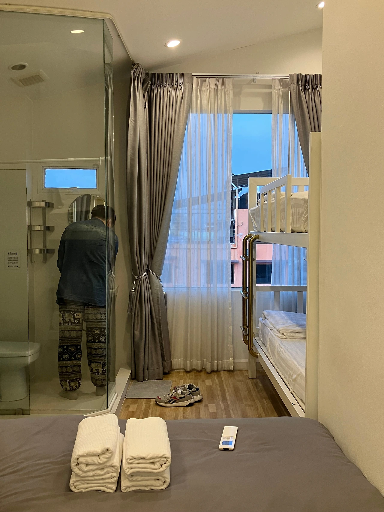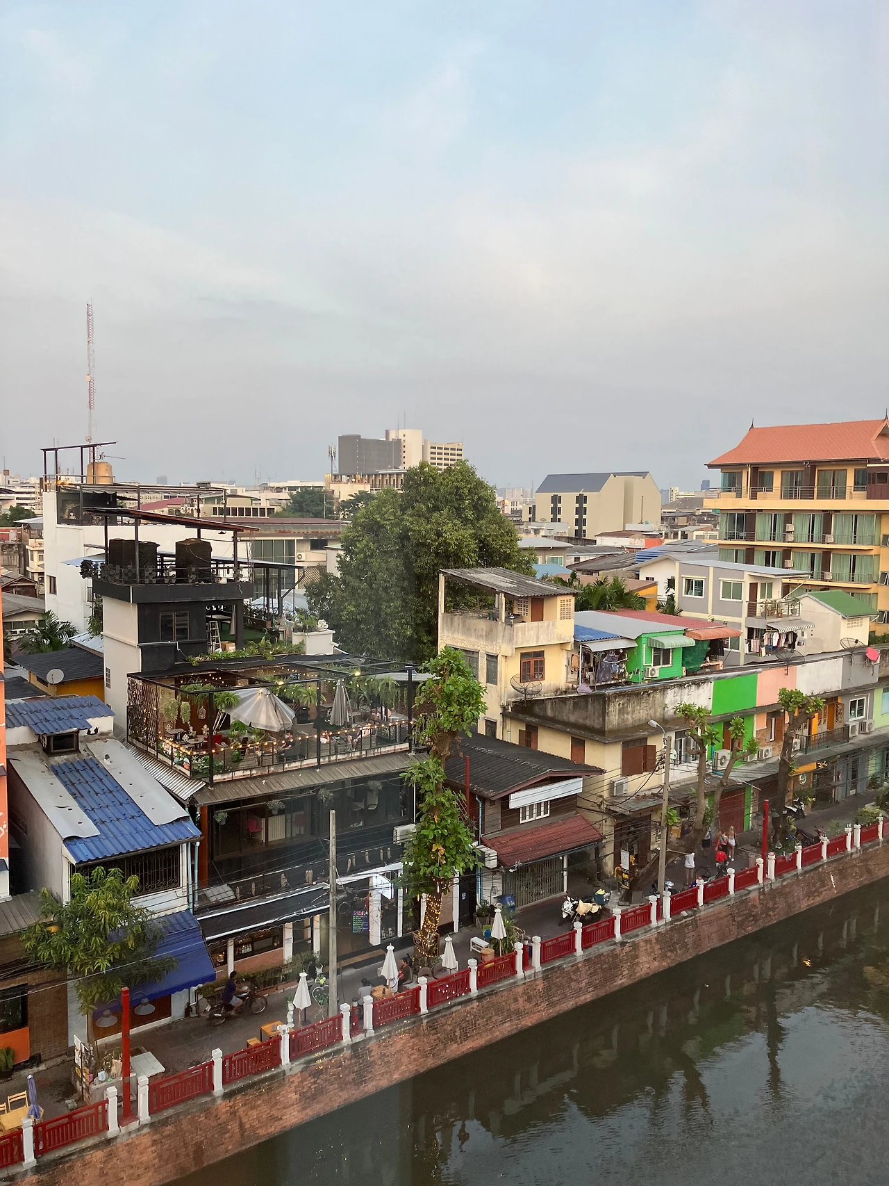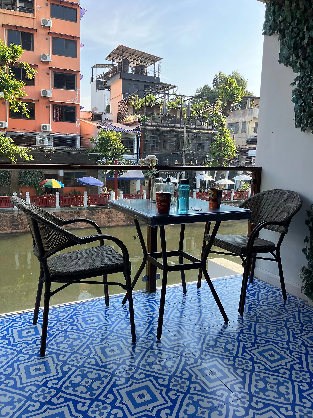 '롤 엘리펜트 호스텔'은 조용하고 깨끗한데다가 친절해서 평점이 높은 숙소. 카오산 쪽으로는 걸어서 갈 수 있을 정도로 가깝기도 해서 여행자들에게 인기가 많은 듯하다. 들어가는 입구에는 번호키(디지털 도어락)가 있어서 보안면에서도 마음이 더 편했다. 도미토리부터 3인실까지 다양한 방이 있었고, 무엇보다도 차와 '아이스크림'이 무료제공 되었다. 하천이 내려다보이는 야외 테라스 공간까지 있어서 이래저래 편하고 쾌적하게 머물 수 있었다. 다만 아쉬운 점은, 3인실의 경우 화장실이 투명유리벽이어서 커튼으로 가려야만 했는데 이 부분은 조금 불편했다. 가격은 2인실 기준 대략 3만 원. (수건 있음, 냉장고 없음, 어메니티 없음)