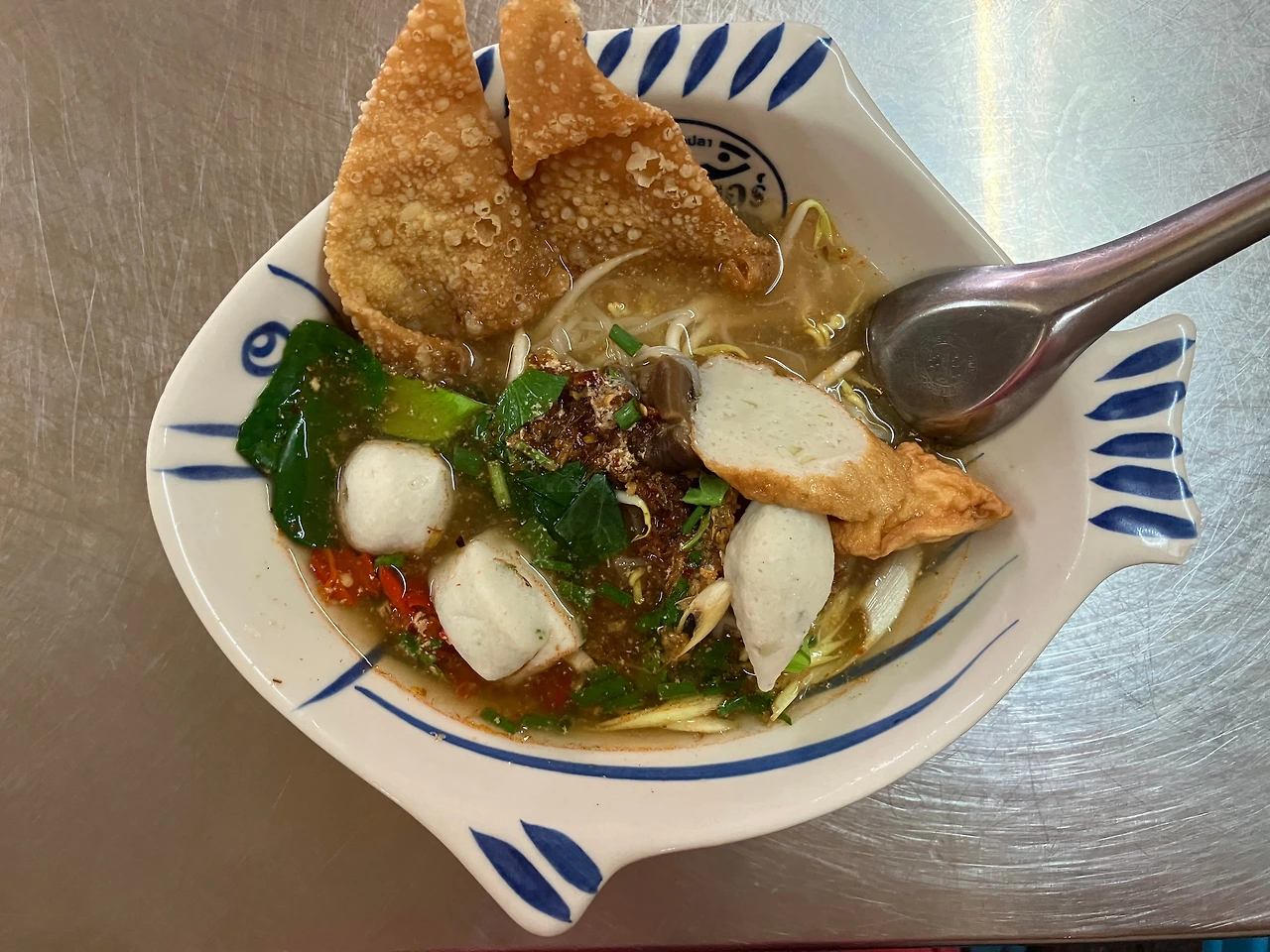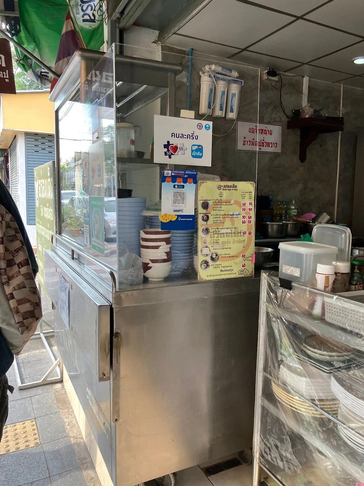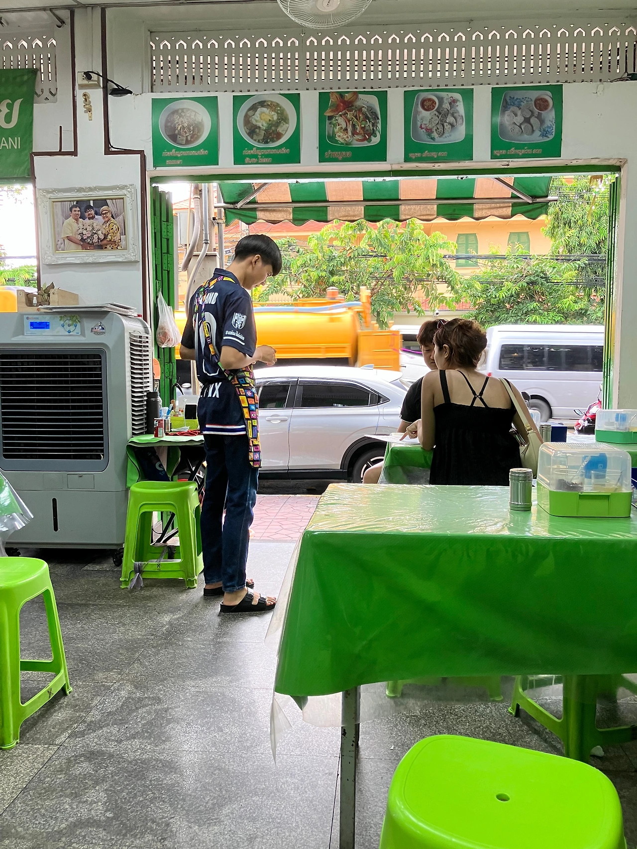 이 가게는 숙소에서 5분도 걸리지 않는 가까운 위치에 있어서 이번에 특히 편하게 갔던 곳이었다. 이른바 '끈적국수'로 유명한 곳으로 알려져 있는데, 웨이팅은 하기 싫어하는 나는 오며가며 보다가 빈 테이블이 있을 때 들어가본 것이다. 가게에 들어가자마자 한국 드라마 촬영 장면이 벽에 붙어있어 눈길을 끌었다. 그래서인지 식사를 하는 손님들도 대략 70% 정도는 한국 사람들이었다. 심지어 워낙 한국인이 많이 방문하는 모양인지 주문 받는 직원분도 간단하게 한국어로 말해주기까지 했다. 하지만 국수 한 그릇을 시킨 게 다인데, 너무 바빠서 그런지 15분 정도 이상을 기다려서야 겨우 받았던 것 같다. 국수는 전분기가 많은 건지 꽤나 걸쭉한 질감을 가지고 있었다. 예전 베트남에서 비슷한 국수를 먹어본 적이 있어서 그리 새롭지는 않았지만, 그와는 별개로 면도 국물도 맛있었다. 이 곳은 나중에 여행에 합류한 친구가 먹고 싶다고 해서 재방문하기도 했다. 그런데 재방문 때 시켰던 스프링롤도 오렌지주스도 꽤 괜찮았다. (국수, 스프링롤 60밧, 오렌지주스 15밧)