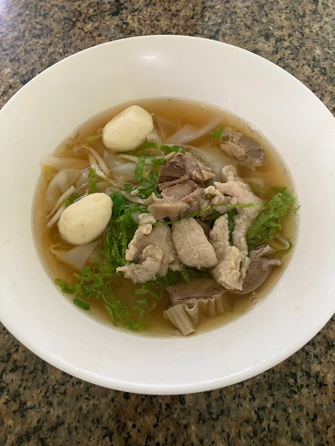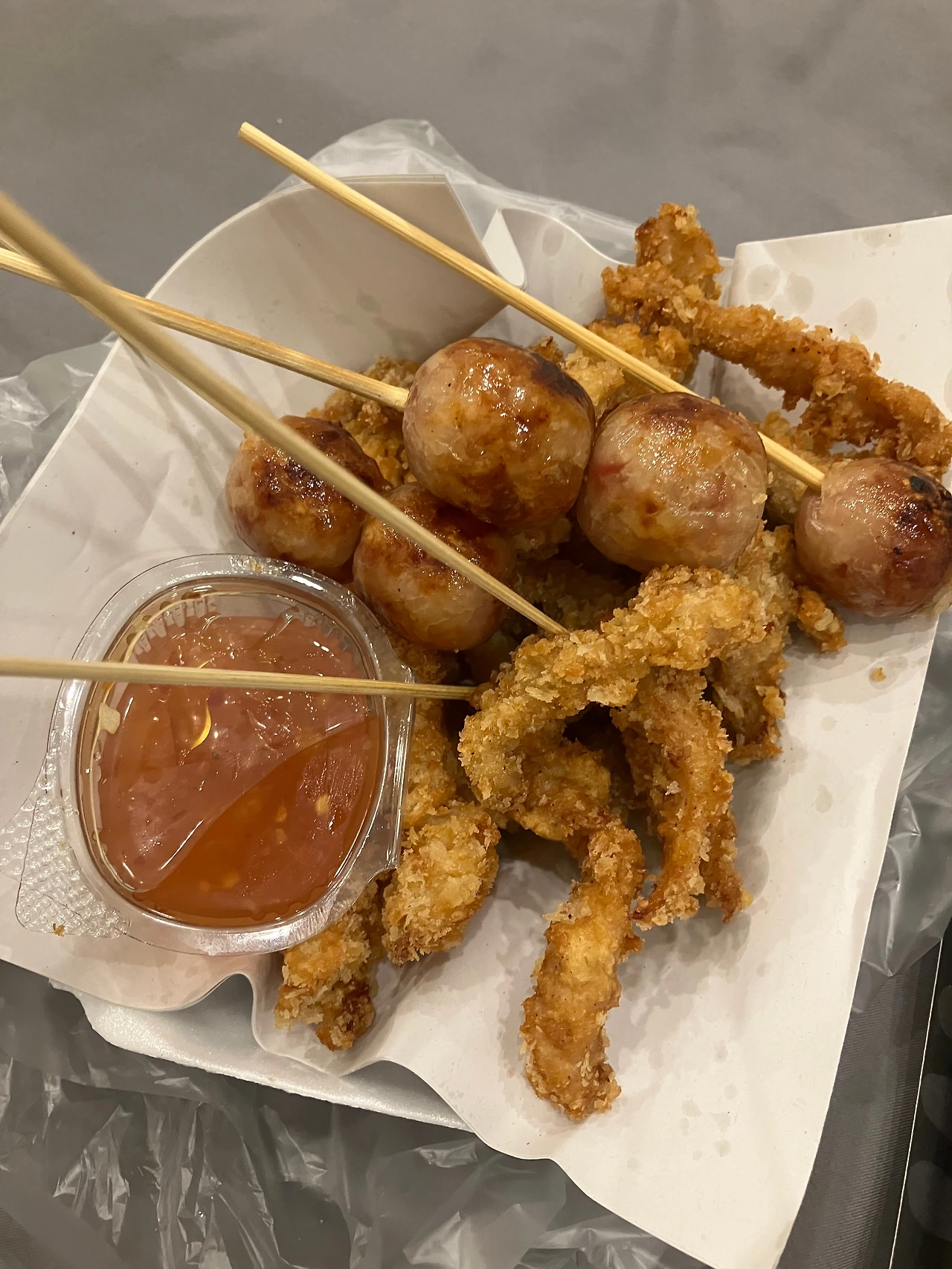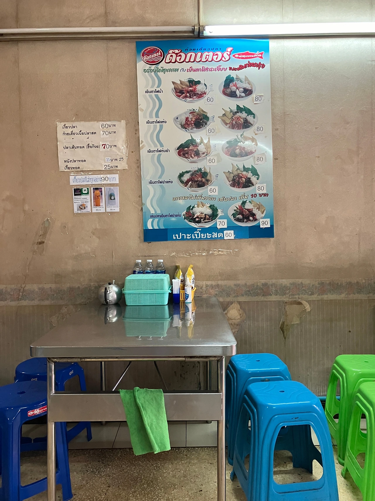 이 가게는 숙소에서 5분도 걸리지 않는 가까운 위치에 있어서 이번에 특히 편하게 갔던 곳이었다. 이른바 '끈적국수'로 유명한 곳으로 알려져 있는데, 웨이팅은 하기 싫어하는 나는 오며가며 보다가 빈 테이블이 있을 때 들어가본 것이다. 가게에 들어가자마자 한국 드라마 촬영 장면이 벽에 붙어있어 눈길을 끌었다. 그래서인지 식사를 하는 손님들도 대략 70% 정도는 한국 사람들이었다. 심지어 워낙 한국인이 많이 방문하는 모양인지 주문 받는 직원분도 간단하게 한국어로 말해주기까지 했다. 하지만 국수 한 그릇을 시킨 게 다인데, 너무 바빠서 그런지 15분 정도 이상을 기다려서야 겨우 받았던 것 같다. 국수는 전분기가 많은 건지 꽤나 걸쭉한 질감을 가지고 있었다. 예전 베트남에서 비슷한 국수를 먹어본 적이 있어서 그리 새롭지는 않았지만, 그와는 별개로 면도 국물도 맛있었다. 이 곳은 나중에 여행에 합류한 친구가 먹고 싶다고 해서 재방문하기도 했다. 그런데 재방문 때 시켰던 스프링롤도 오렌지주스도 꽤 괜찮았다. (국수, 스프링롤 60밧, 오렌지주스 15밧)