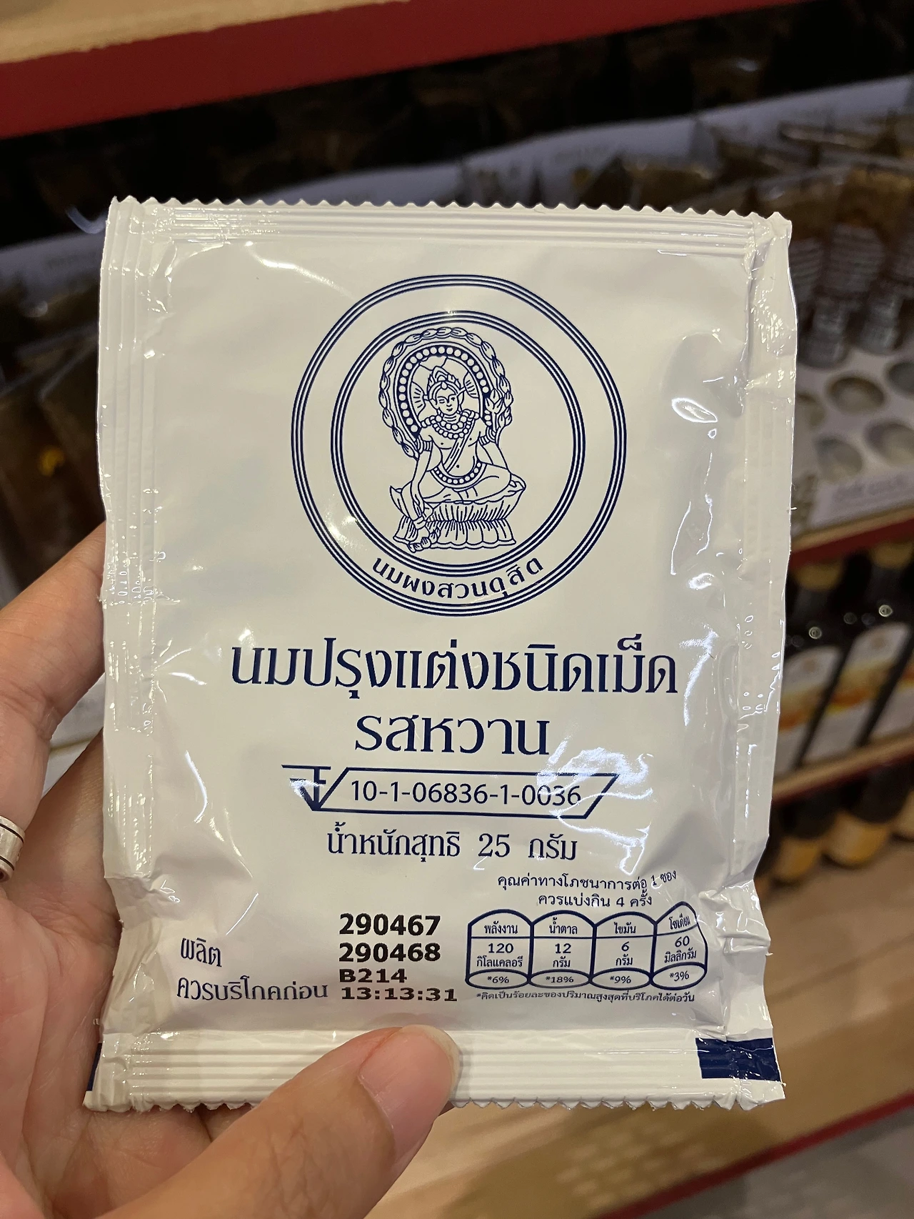 태국에서 유명한 '차트라뮤'의 밀크티 파우더를 마트에서 쉽게 구할 수 있다. 동남아에서 많이 마시는 '마일로'도 저렴한 가격에 살 수 있다. 나는 보통 차트라뮤는 방콕에서 마시는 것으로 만족하고, 마일로는 여름에 시원하게 마실 수 있어서 태국에 갈 때마다 챙겨서 사오는 편이다. (가격 차트라뮤 틴케이스 기준 150밧 안팎, 마일로 100밧 안팎.)