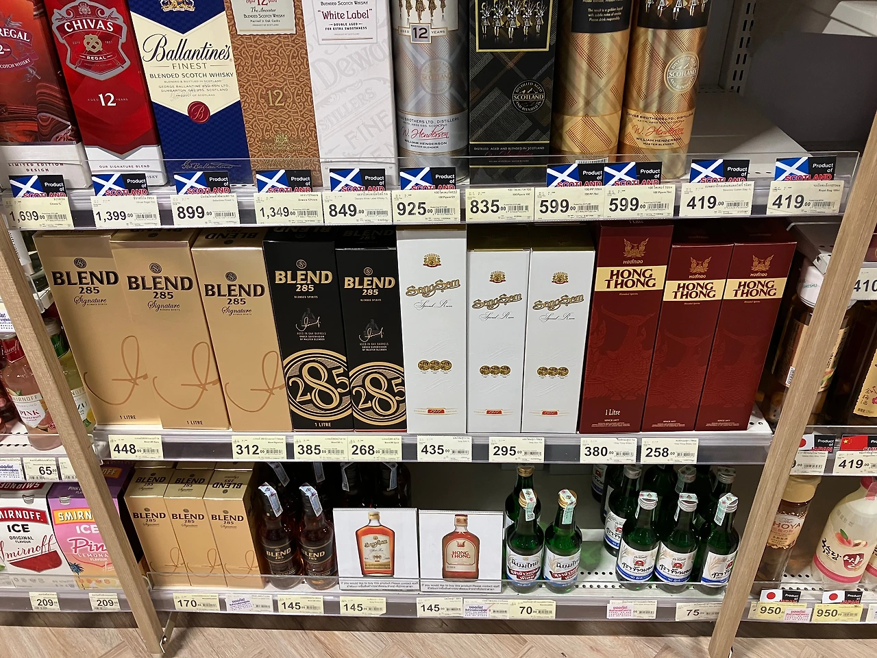 태국에서 여행자들이 많이 구입하는 술로는 쌤쏭, 리젠시, 블렌드, 홍통, 천도 등이 있다. 그 중에서 '리젠시'는 구하기가 어려워 거의 판매하는 곳을 보지 못했지만, 나머지 쌤쏭, 블렌드, 홍통의 경우에는 어디서나 어렵지 않게 구할 수 있었다. '천도(텐도)'는 최근에 출시된 위스키로, 이름만 놓고 보면 일본 술 같지만 태국의 위스키라고 한다. '천도'는 현재 이마트 24에서 판매 중이기도 하다. (술 종류에 따라 다르지만 대략 700ml 기준 400밧 안팎)