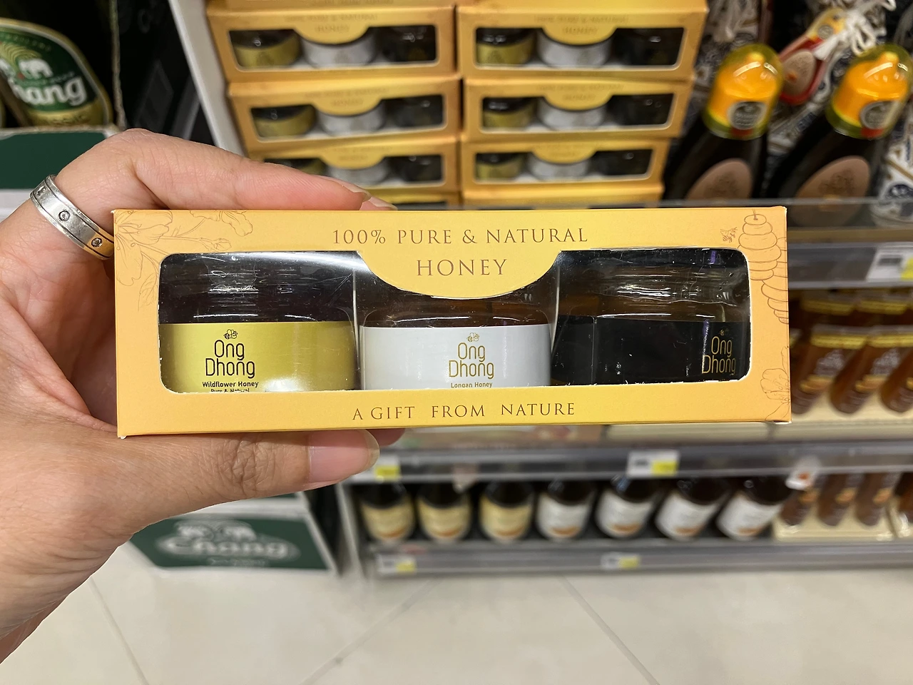 태국은 꿀로도 유명하다고 한다. 그래서인지 등급별로 다양한 브랜드의 꿀을 판매하고 있었다. 그 중에서도 특히 태국 왕실에서 취급한다고 하는 꿀이 가장 유명하다. 이름은 '도이캄' 꿀로, 튜브형으로 포장된 제품의 경우에는 여행 중에도 언제든 편하게 먹을 수 있어서 좋다. 이외에도 다양한 꿀이 많이 있으며, 사이즈도 큰 사이즈부터 작은 사이즈까지 판매하고 있어서, 선물용으로 구입해도 좋을 것 같다. (120ml 기준 가격 45밧 안팎)