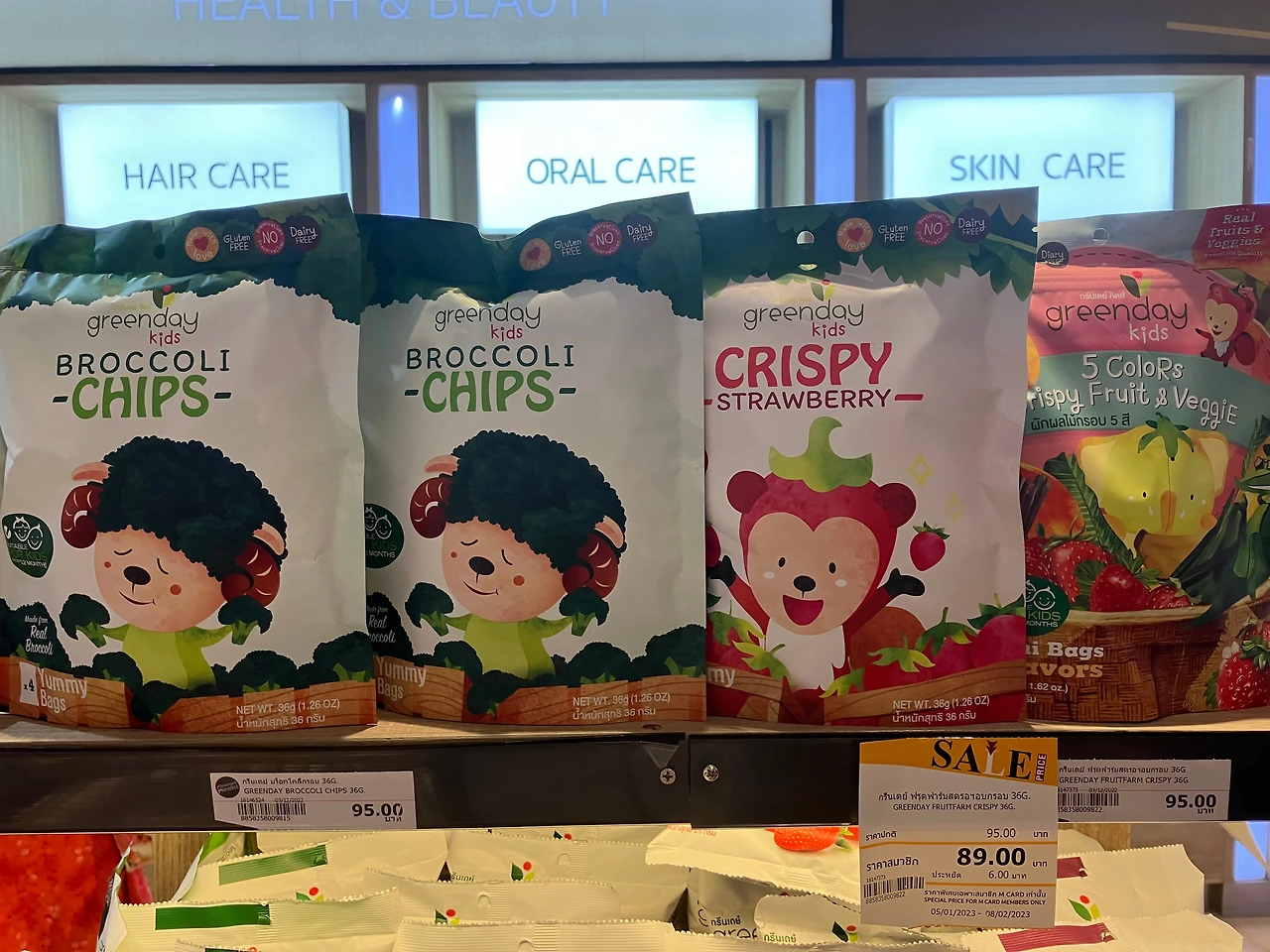 요즘 한국 과자 가격은 한없이 치솟아올라 높이높이 더높이 노래를 부르고 있다. 그래서 기왕 방콕을 여행한다면 가볍게 살 수 있어 좋은 태국 과자들과 인사를 나눠보는 것도 좋다. 각자의 기호에 따라 선택이 가능한데, 여행자에게 특히 유명한 과자로는 망고맛/ 똠얌꿍맛 포키가 있고, 그밖에도 로얄 치트랄라다 분유캔디/ 분유 사탕, '벤토'라는 브랜드가 특히 유명한 어포 등이 있다. 이것들 이외에 내 입에 맞았던 것은 쌀 과자, 망고밥맛 곤약 젤리(세븐 일레븐에서 구입), 듀베리 샌드 과자, 그리고 마이 츄이 옥수수 젤리였다. 하리보 젤리도 한국보다 종류가 더 많으니, 하리보를 좋아한다면 편의점이나 마트를 한 번 둘러보는 것으로!