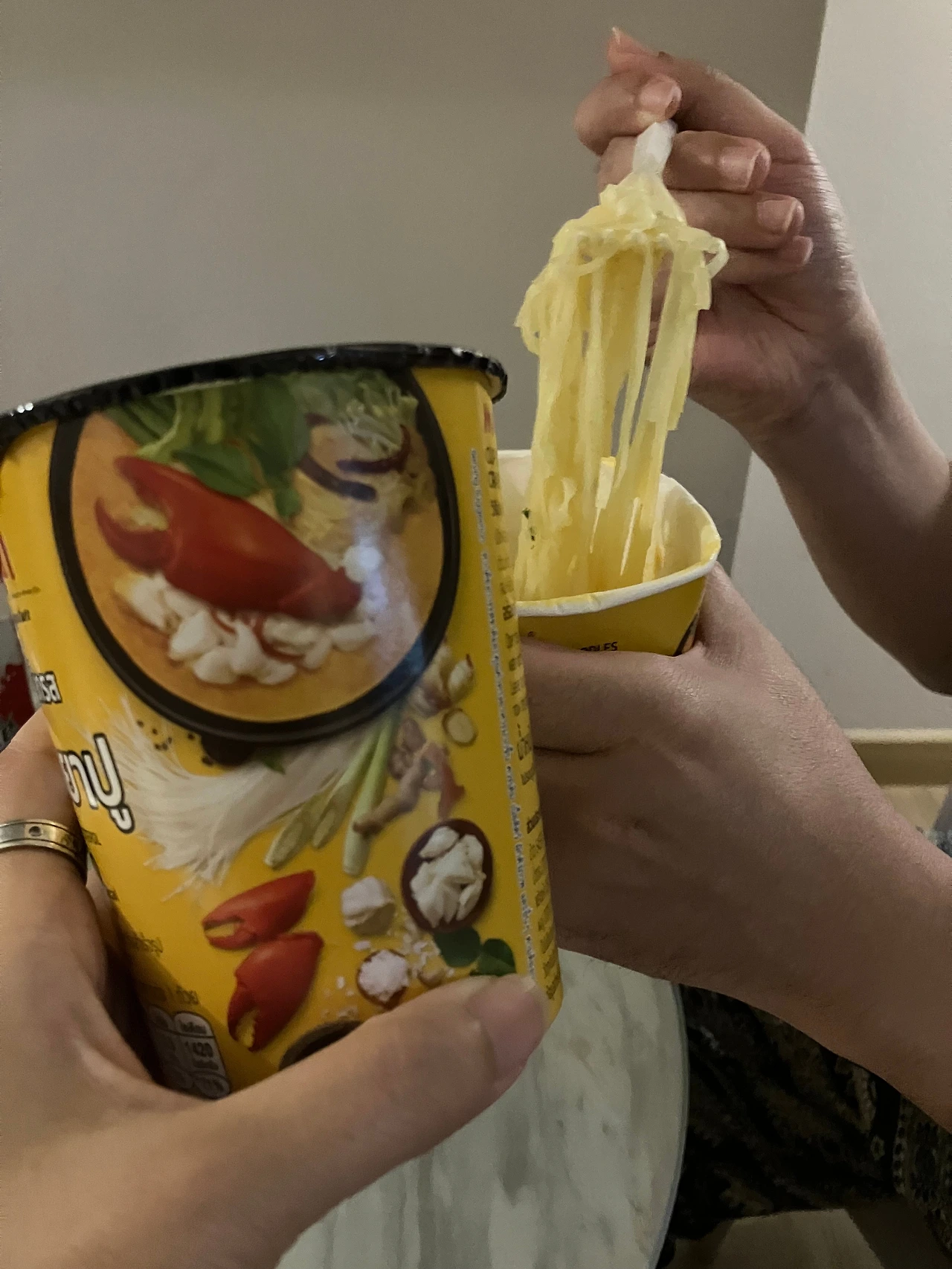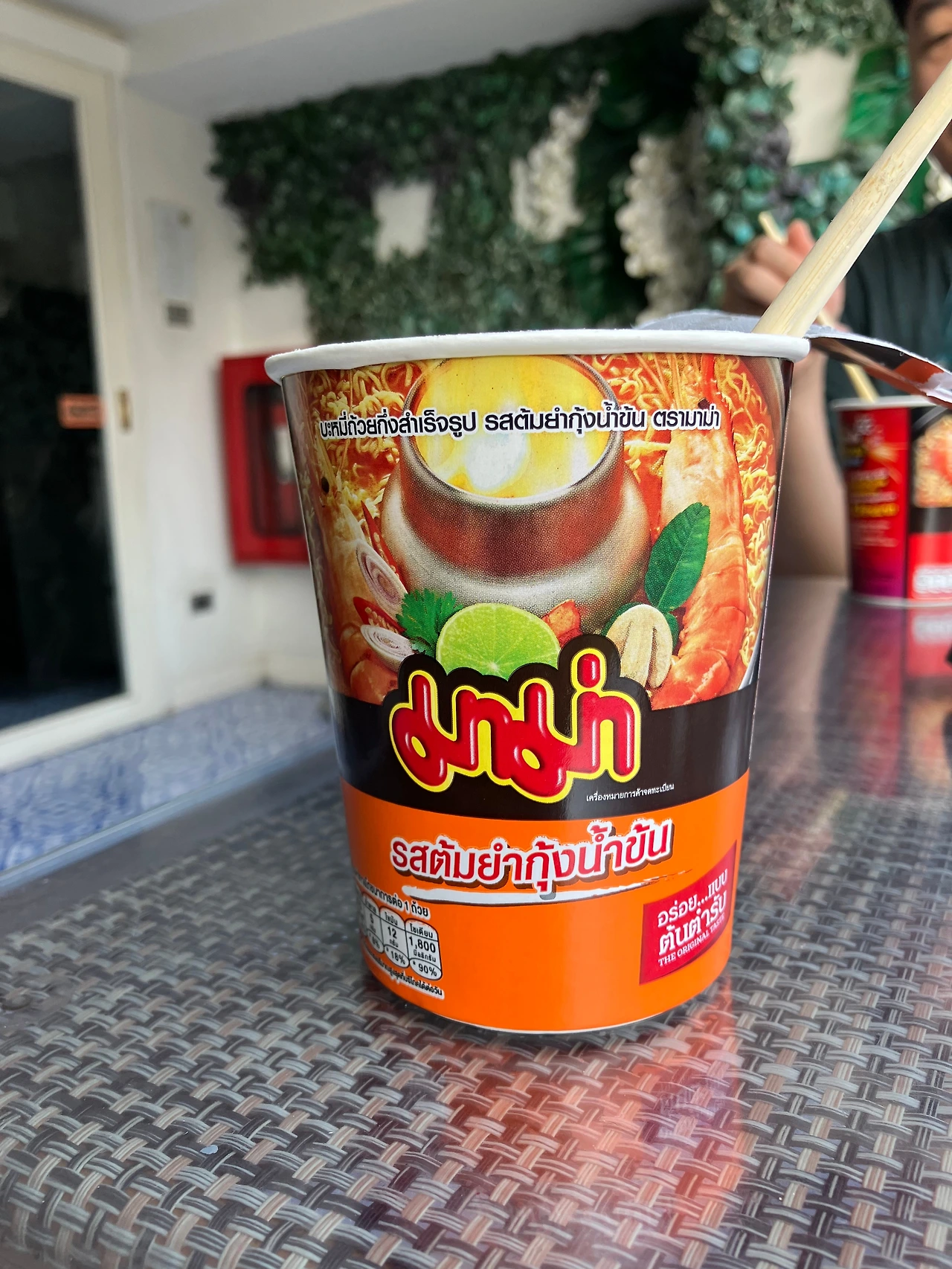 똠얌 스프는 태국을 대표하는 음식 중 하나이다. 그래서 똠얌 맛이 나는 라면도 이미 한국에서 판매하고 있다. 하지만 맛은 똑같을지언정 가격은 정말 하늘과 땅 차이. 그러니 기왕 방콕에 여행을 갔다면 똠얌 라면을 구입해보는 것도 좋은 선택이 될 것이다. 끓여 먹는 라면과 컵라면 두 종류가 있는데, 개인적으로는 귀찮음 탓에 컵라면을 쟁여 오는 편이다. (가격 15밧 안팎)