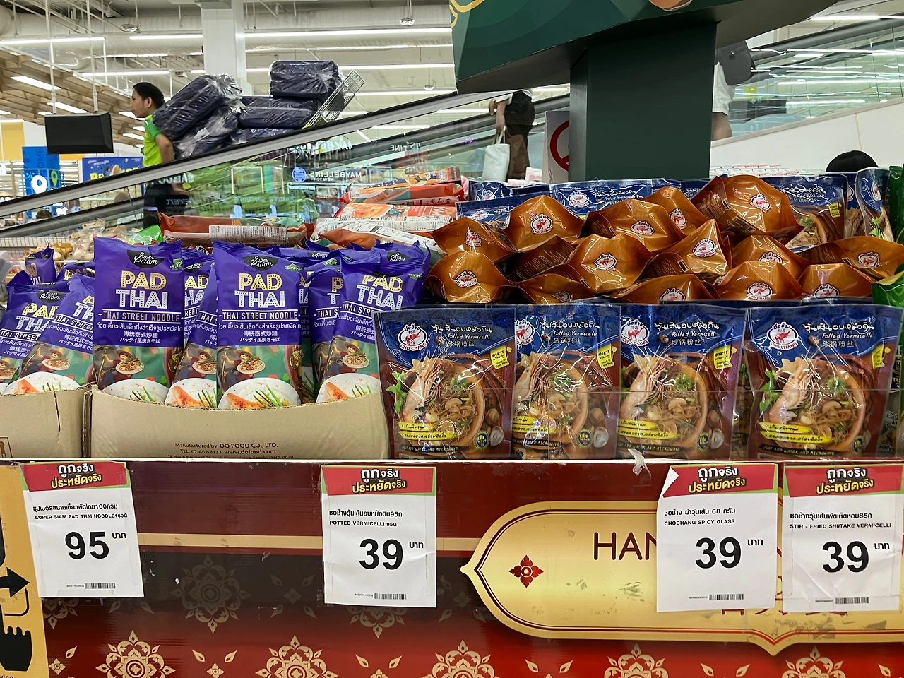 쌀국수의 경우에는 이제 한국에서도 부담스럽지 않은 가격에 살 수 있게 되었다. 그래도 여전히 태국이 더 싸다. 특히 태국 현지에서는 1인분씩 소포장 된 쌀국수를 판매하고 있어서 구매해 보았다. 한 번에 먹을 만큼 꺼내 먹을 수 있으니 편리하다. (가격 10인분 소포장 53밧)