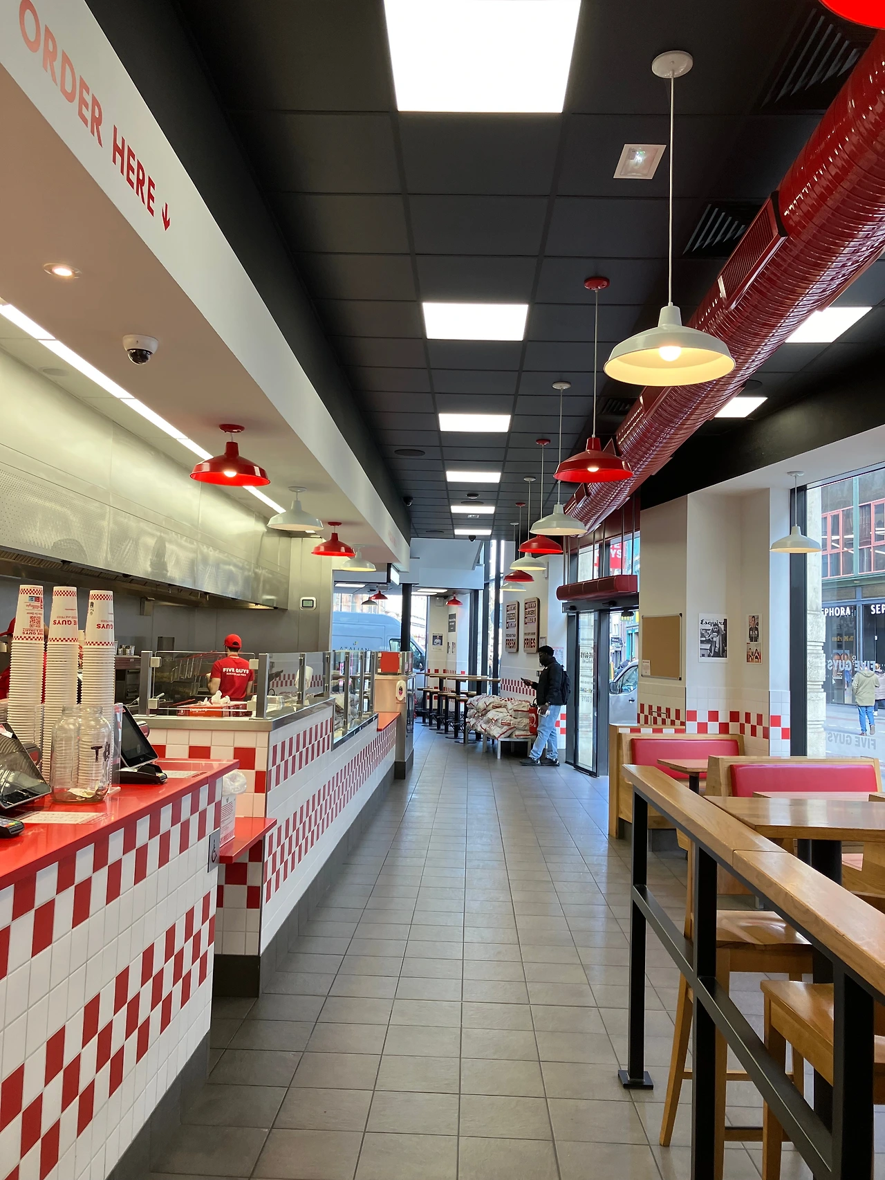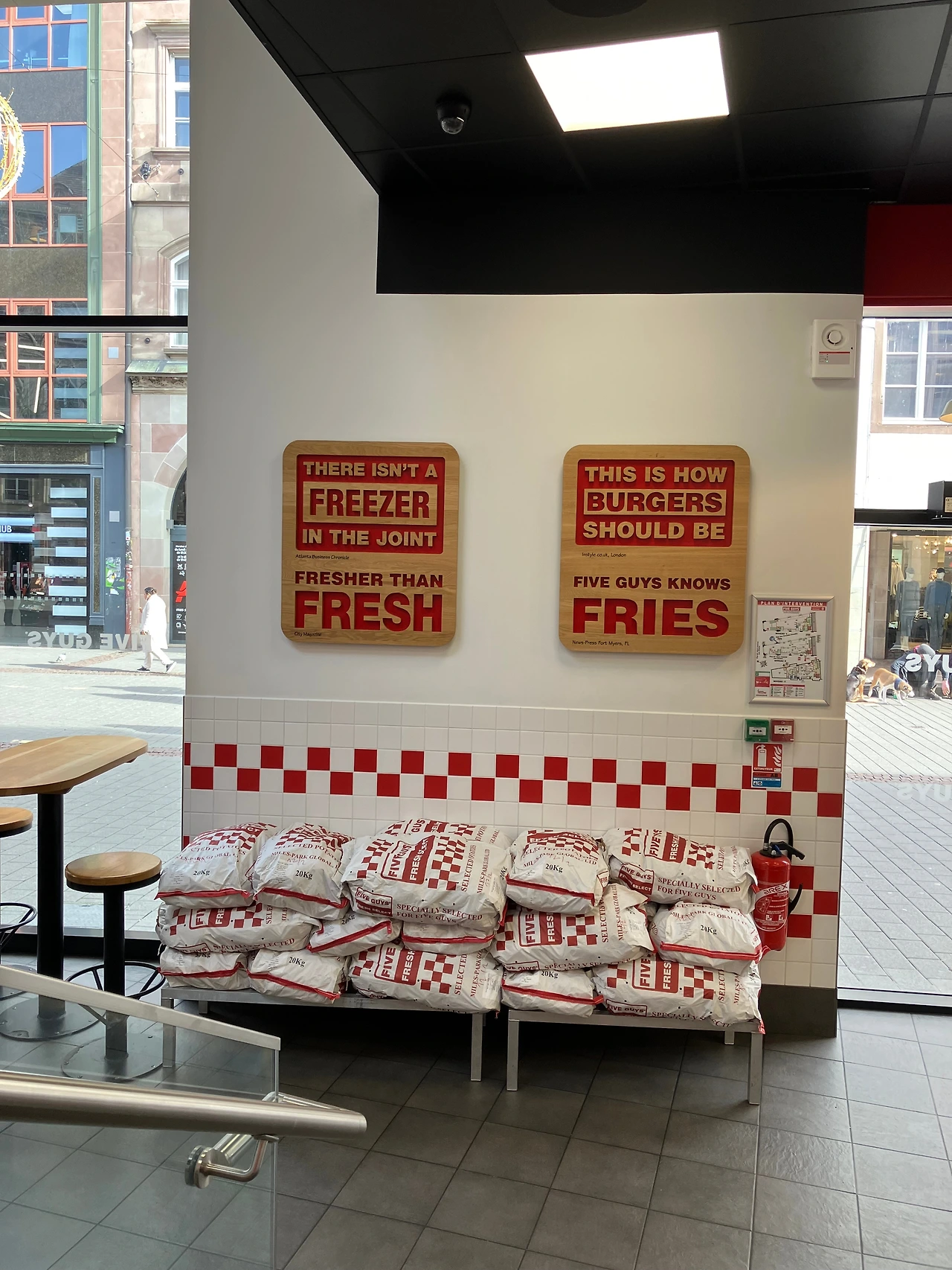 쉑쉑버거와 더불어 미국에서 유명한 햄버거라고 하는 <파이브 가이즈(Five Guys)>도 최근 한국에 상륙해서 사람들이 오픈런을 할 정도로 인기가 많다고 한다. 가수 성시경님이 '먹을텐데'에서 파이브 가이즈 햄버거를 포장해서 먹어보는 영상이 있을 정도로 유명한 곳. 하지만 난 그 식당을 프랑스 스트라스부르에서 가보게 되었다. 유럽여행 중에 스트라스부르에 방문할 일이 있었는데, 중앙광장(Place Kléber) 근처에서 빨간 외관의 파이브 가이즈 건물을 보게 된 것이다. 마침 점심(늦은 아침)을 먹어야 했기에 들어가서 햄버거를 주문했다. 파이브 가이즈의 햄버거는 '정말 기본에 충실하다.'라는 느낌을 강하게 받았다. 무엇보다도 한국에서는 긴 줄까지 서야 할 정도로 유명하다는 햄버거를, 줄 하나 서지 않고 먹어봤다는 것에 만족했다.