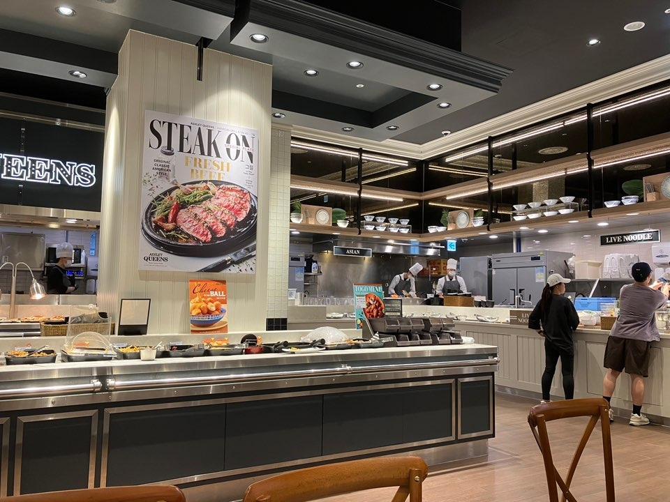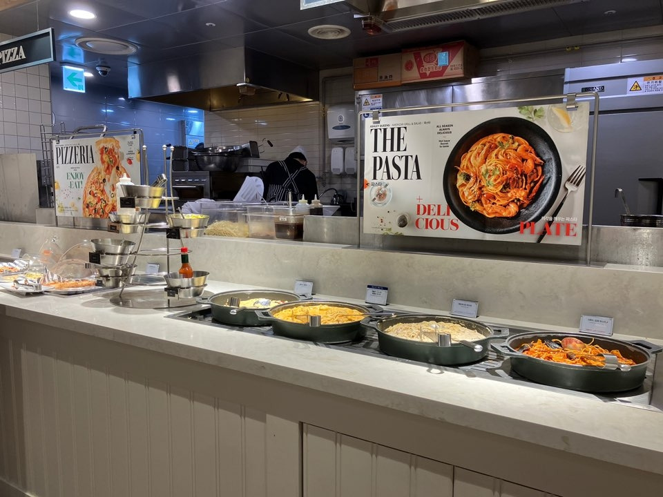 메인 메뉴를 시키지 않는다면 결혼식처럼 편하게 먹을 수 있고, 빈 그릇은 로봇이 치워주니 그냥 자유롭게 먹기만 하면 되었다. 예전에 애슐리는 가성비 때문에 평일 런치로 많이 갔었는데, 디너로 식사를 하니 확실히 런치 때보다는 음식의 가짓수가 많았다.