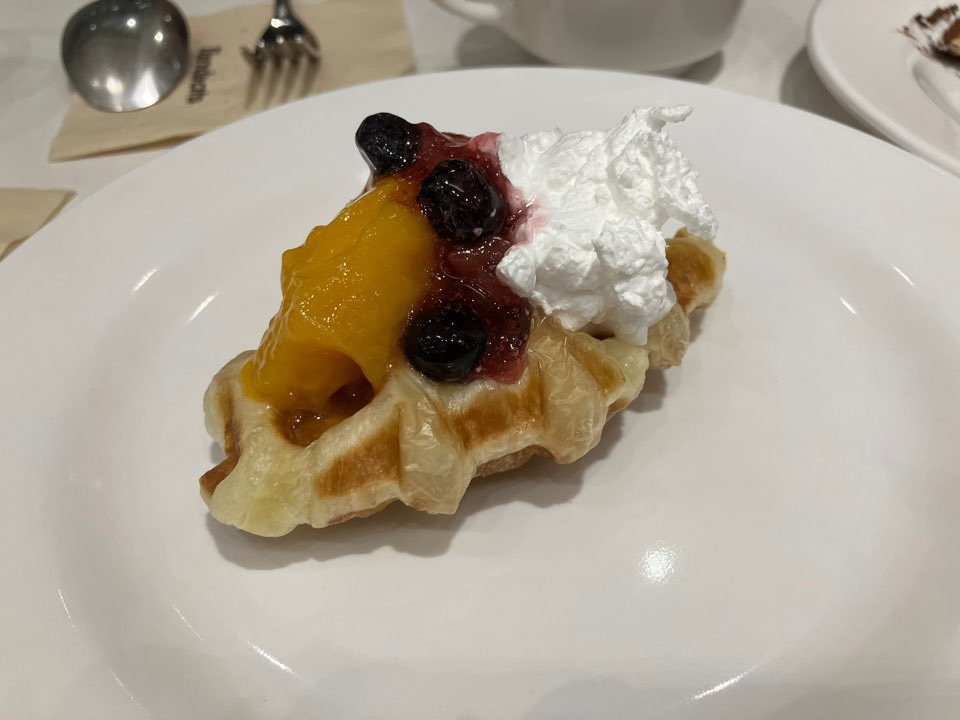 배는 부르지만 디저트를 포기할 수는 없어서 커피와 함께 준비된 디저트들도 먹어봤는데 가장 괜찮았던 것은 크로와상 생지로 직접 크로플을 구워서 만들어 먹을 수 있었던 것. 그리고 생각보다 커피의 맛은 괜찮았다.