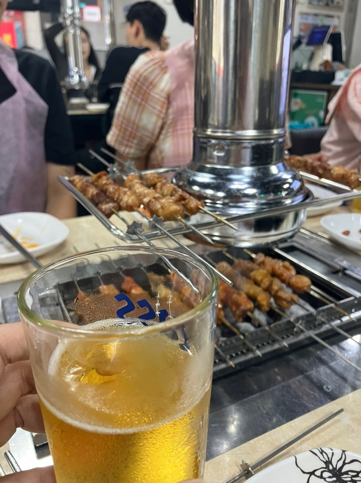 그리고 주문을 하다가 충격적이었던 것이 있었는데, 양꼬치와 먹기 위해 마늘을 주문하려고 하니 생마늘을 추가요금을 받고 내어준다는 것, 고수도 마찬가지. 내가 자주 가는 양꼬치 집에서는 있을 수 없는 일이었기에 놀랐다. 하지만 양꼬치에 마늘을 먹어본 적이 없다는 친구들을 위해 마늘을 시켜 같이 먹으며 친구들과 맥주 한 잔을 나눴다. 친구들과 수다는 제대로 못 떨었지만 (그래서 식사 후 카페에서 수다를 떨긴 했지만) 오랜만에 양꼬치에 맥주를 한 잔 할 수 있어서 즐거운 시간이었다.