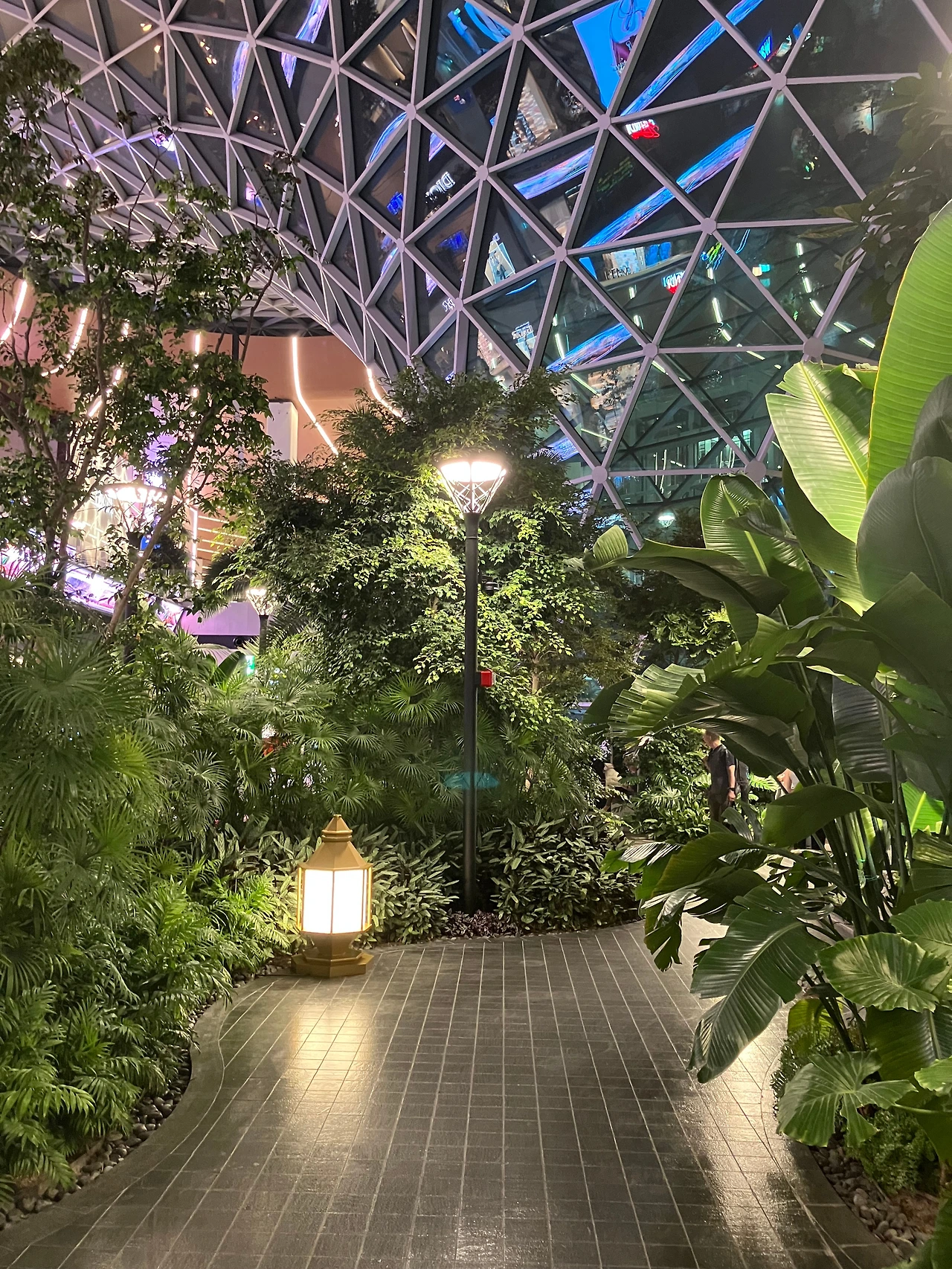진짜 '숲'이었다. 가짜 나무도 아니고 진짜 나무들이 빼곡히 심어져 있던 것이었다. 공원이라고 해도 믿을 만큼의 규모였는데, 실내에 그런 숲이 있다니 역시 산유국이구나 하는 생각이 들었다. 이륙을 기다리는 많은 여행객들이 이미 벤치에 앉아서 혹은 나무 밑에 누워서 휴식을 취하고 있었다. 별 건 아닐 거라고 생각해서 비행 시간이 얼마 남지 않은 시각이 되어서야 어슬렁어슬렁 찾아가본 건데, 이렇게나 좋은 풍경을 만날 수 있다는 것을 알았다면 조금 더 일찍 찾아와서 쉴 것을 그랬다 싶었다. (가는 길에 모노레일이 달리는 구간이 있는데, 여기는 걸어가면 30-40분 넘게 걸리는 긴 구간이니 가급적 모노레일을 이용하자. - 걸어서 30,40분이나 걸린다는 사실을 굳이 알고 싶지 않았던 1인.)