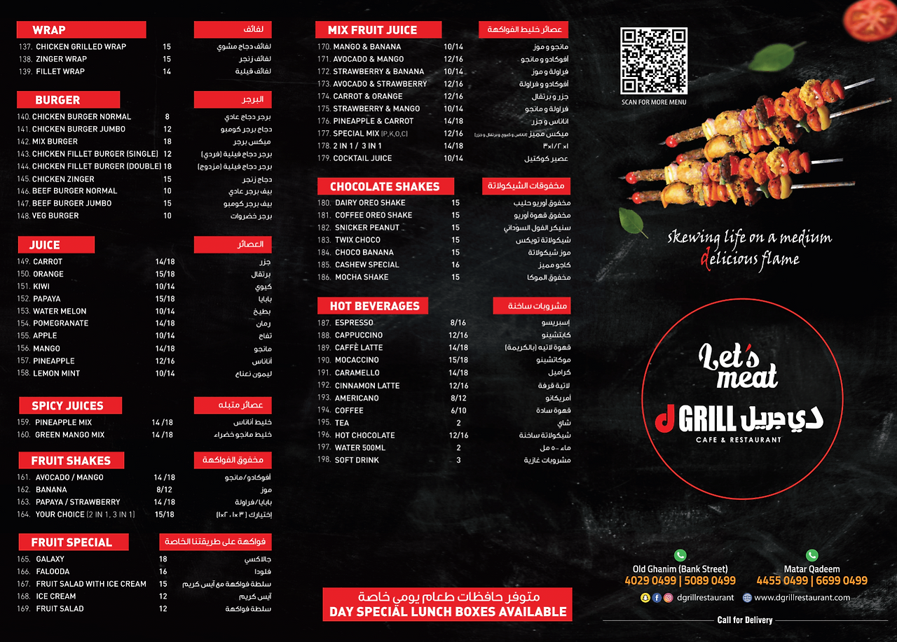 그래서 찾아간 식당은 호텔에서 10분 정도 떨어져 있는 <Dgrill Restaurant>이라는 곳이었다. 별다른 정보는 없었지만 관광지에서 조금 떨어져 있었기 때문에 조용하게 식사를 할 수 있을 것 같아서 찾아간 것이었다. 가게 이름 그대로 그릴에 구운 고기를 다루는 곳인 듯했는데, 시끌벅적한 수크 와키프와는 다르게 너무도 조용했다. 조용한 곳을 찾아간다고 갔는데 되려 지나치게 조용하니 또 들어가기 꺼려지는 이 심리는 무엇일까? 잠시 망설이다가 가게 앞 야외 좌석에 자리를 잡았다. 이 밤중에 낯선 거리를 헤맬 수는 없는 일이었으니까.