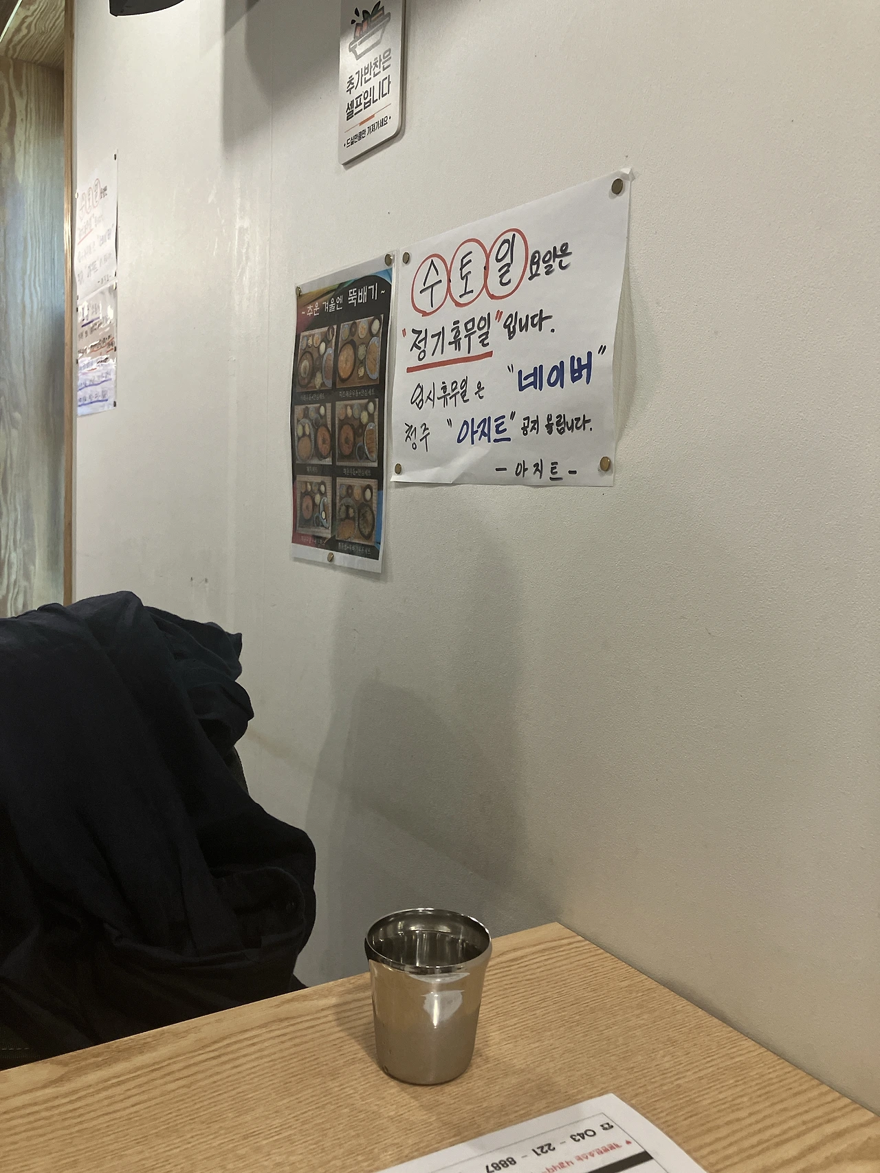 청주에 가면 뭘 먹어볼까 생각하다 미리 식당을 찾아봤다. 평소였다면 그냥 적당히 사람이 많은 곳에 들어갔겠지만 이번에는 커다란 짐이 있었기 때문에 무작정 돌아다닐 수가 없었다. 짐이 있으니 서울을 오가는 터미널과도 가까우면 좋겠고, 요즘 먹고 싶은 음식에, 맛도 있었으면 좋겠고, 짐을 들고 들어갈 수 있는 곳이면 좋을 것 같았다.