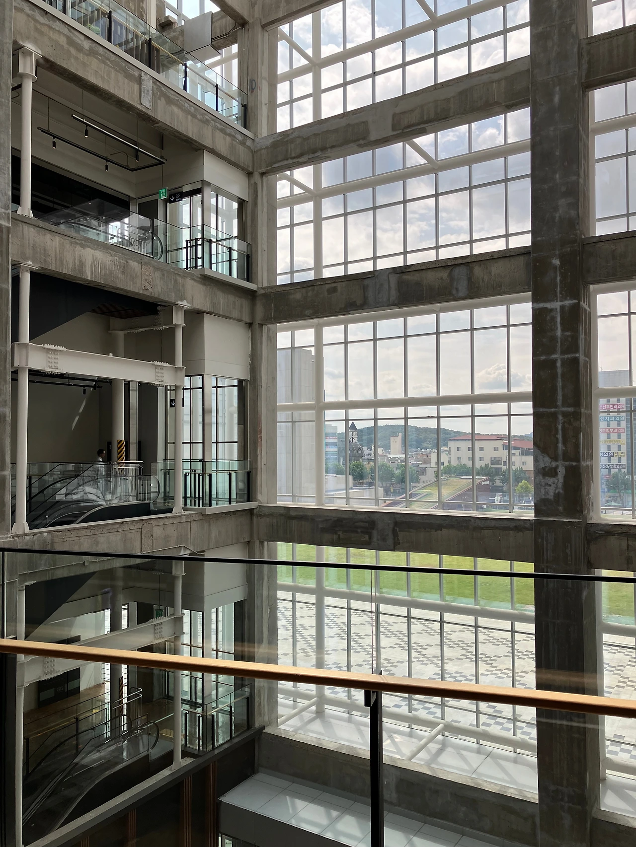 한낮에는 여전히 덥다. 아이스 아메리카노 한 잔을 입에 물고 캐리어를 끌고 밀어서 문화제조창에 무사히 도착했다. 커다란 현수막이 걸려있어서 어렵지 않게 찾아 들어갈 수 있었다. 처음 가 본 문화제조창 건물은 1층에는 식당과 카페를 비롯한 상점들이 있고, 위층은 갤러리와 사무 공간으로 사용되고 있었는데, 꽤 멋진 곳이라서 첫인상이 무척 좋았다.