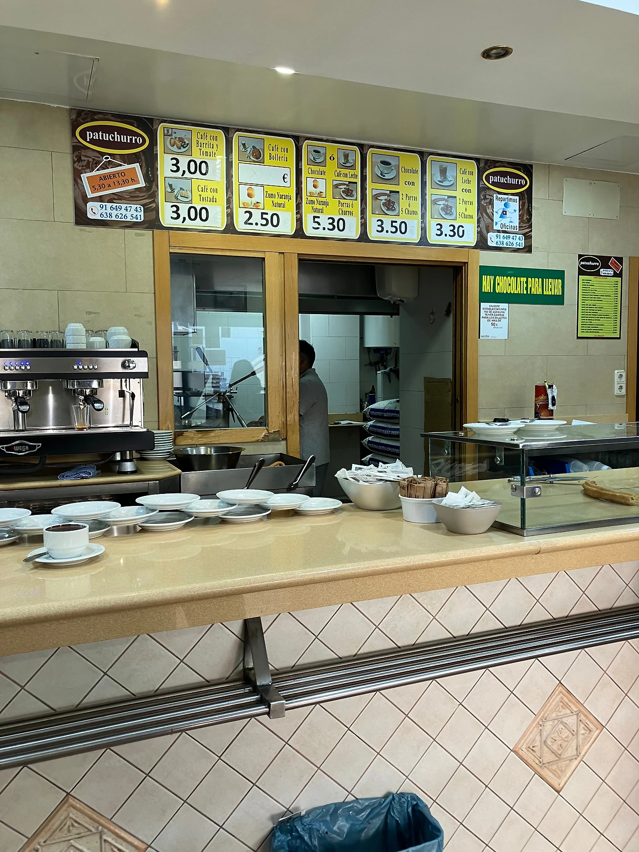 난 이미 오래 전 첫 유럽 여행 당시 '산 히네스'에는 가봤기 때문에(물론 너무 오래 전이라 기억이 잘 나지는 않지만), 이번에는 관광객들이 많지 않은 곳에 가서 추로스를 맛보고 싶었다. 스페인 사람들이 보통 아침에 간단한 식사로로 많이 먹는다고 하니, 아침에 일어나 숙소에서 가볍게 걸어갈 수 있는 위치 안에서 추로스 가게를 찾아보았다. 그리고 내가 찾은 가게는 <파투추로(Churreria Patuchurro)>라는 가게로, 심지어 아침 장사만 하는 곳이었다. 우리나라에서도 점심이나 저녁 장사만 고집하는 곳이 맛집인 경우가 꽤 있기 때문에, 혹시 여기도 그렇지 않을까 하고 기대하면서 선택한 것이다.