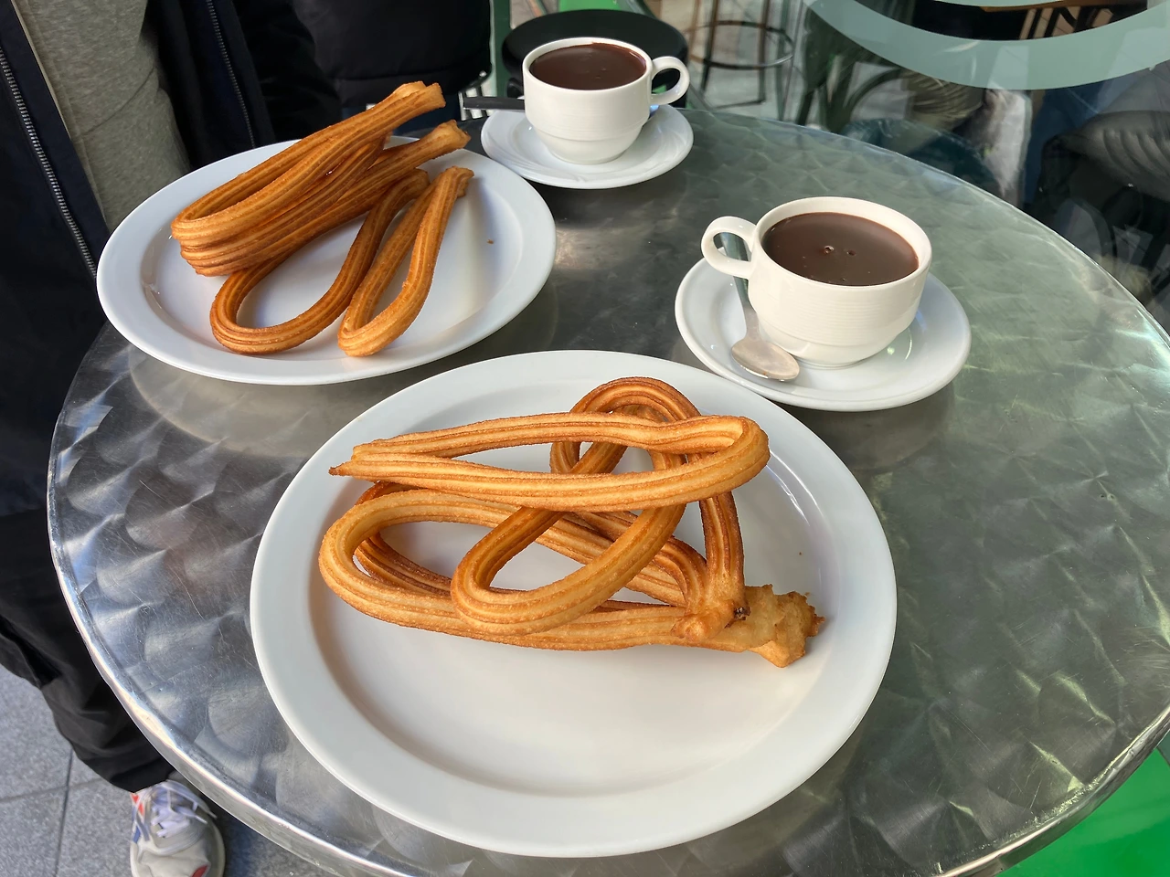 '스페인' 하면 떠오르는 먹거리들이 아주 많다. 빠에야, 하몽을 비롯해서 맛있고 질 좋은 와인까지. 그리고 그 중에서도 특히 마드리드에 가면 여행객들이 꼭 한번은 먹는 음식이 있다. 그것은 바로 초콜릿 음료와 추로스이다.(우리나라에서는 '츄러스'라고도 표기하지만, 이 글에서는 현지 표기에 따라 '추로스'라고 표기한다.) 마드리드에는 워낙 유명한 추로스 집(1894년에 설립한 '산 히네스')이 있어서, 대부분의 여행자들은 그리로 발걸음을 재촉하기 마련이다.