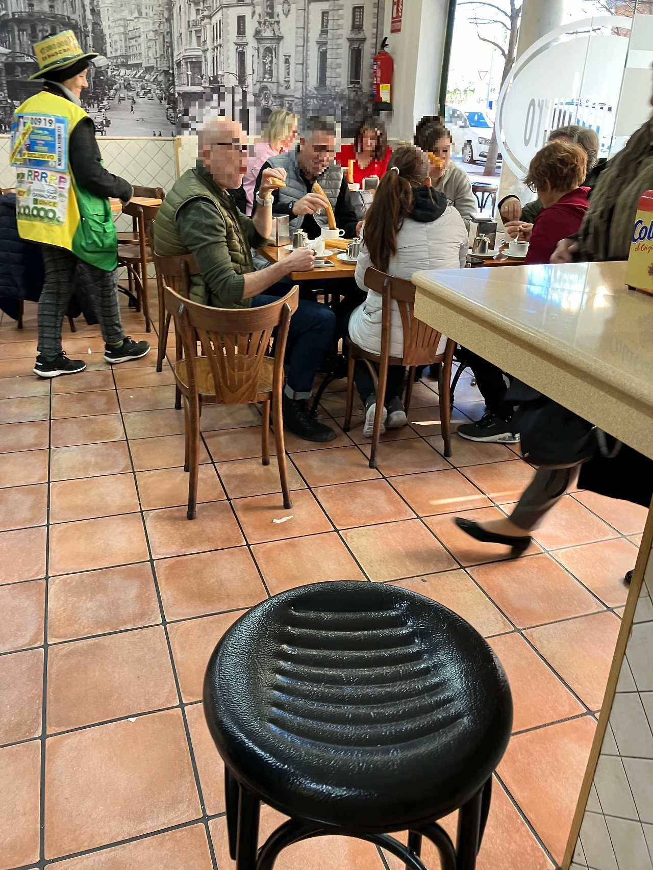 가게 내부에는 서서 먹는 자리 밖에 안 남아있었기 때문에, 우리는 주문한 음식을 받아 들고 가게 앞 야외에 있는 서서 먹는 작은 테이블에 자리를 잡았다. 갓 튀긴 추로스는 당연히 엄청나게 맛있었고, 쌀쌀한 계절 오전에 밖에서 먹는 따뜻한 초콜라떼는 정말 더 이상 말해 뭐해 싶은 맛이었다. '산 히네스'에서는 맛이 어땠는지 기억이 안 나지만, 여기 <파투추로>의 추로스와 초콜라떼는 단맛이 거의 없어서 식사로 먹기에 좋았다. 우리나라에서처럼 뇌를 직접 가격하는 달콤한 맛을 기대한다면 오히려 실망할 수도 있겠다 싶지만, 아침 식사로 먹기에는 확실히 이 정도가 좋았다.