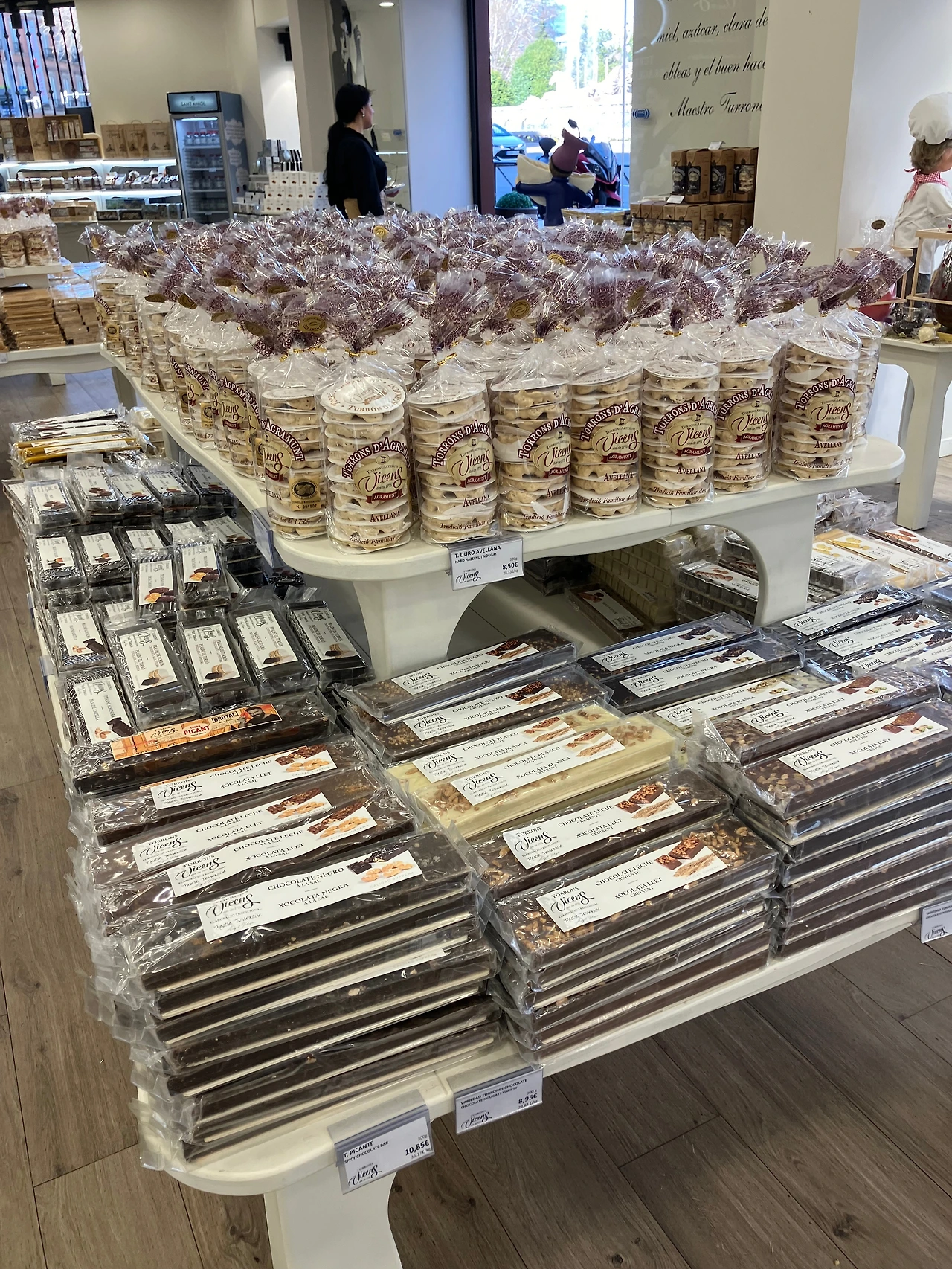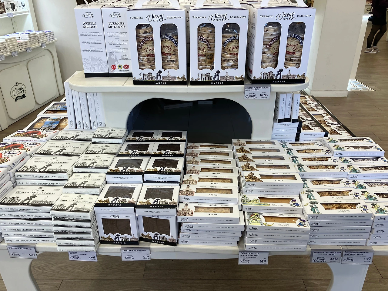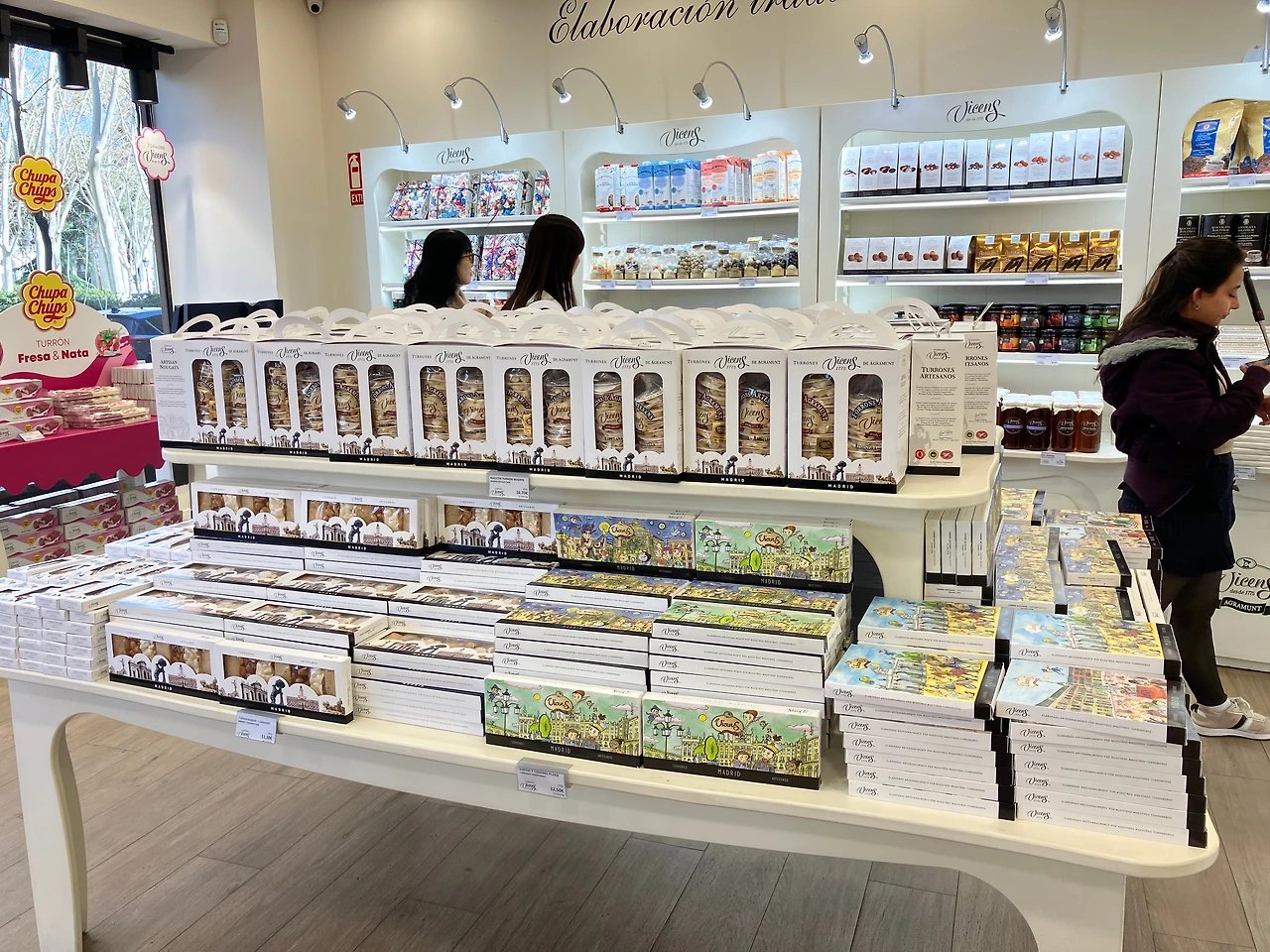들어간 가게는 꽤 넓었다. '토론(투론/또론/뚜론)'(어감도 좋아라~)의 종류도 많고 크기도 무척 다양했다. 안내하는 직원들이나 계산하는 직원들도 매우 친절하고 그냥 구경하기에도 편해서 그런지, 이미 여러 나라에서 온 걸로 보이는 많은 여행자들이 스페인 여행을 기념하는 선물용으로 구입하고 있었다. 우리처럼 시식에 이끌려 들어오는 사람들도 많았고.