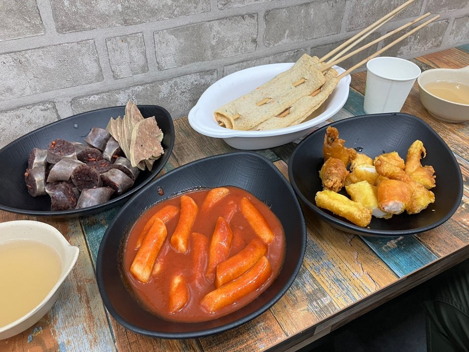 오픈형 가게라서 오며 가며 편하게 먹고 갈 수 있는 분위기였다. 나는 편안하게 먹기 위해 자리를 잡고 앉았다. 떡볶이만 간단하게 먹을 생각이었으나, 막상 메뉴를 보니 이것저것 먹고 싶다는 생각이 들었다. 결국 떡볶이, 순대, 튀김,(3개) 어묵(4개)까지! 세트(14,500원)로 거하게 주문을 했다.