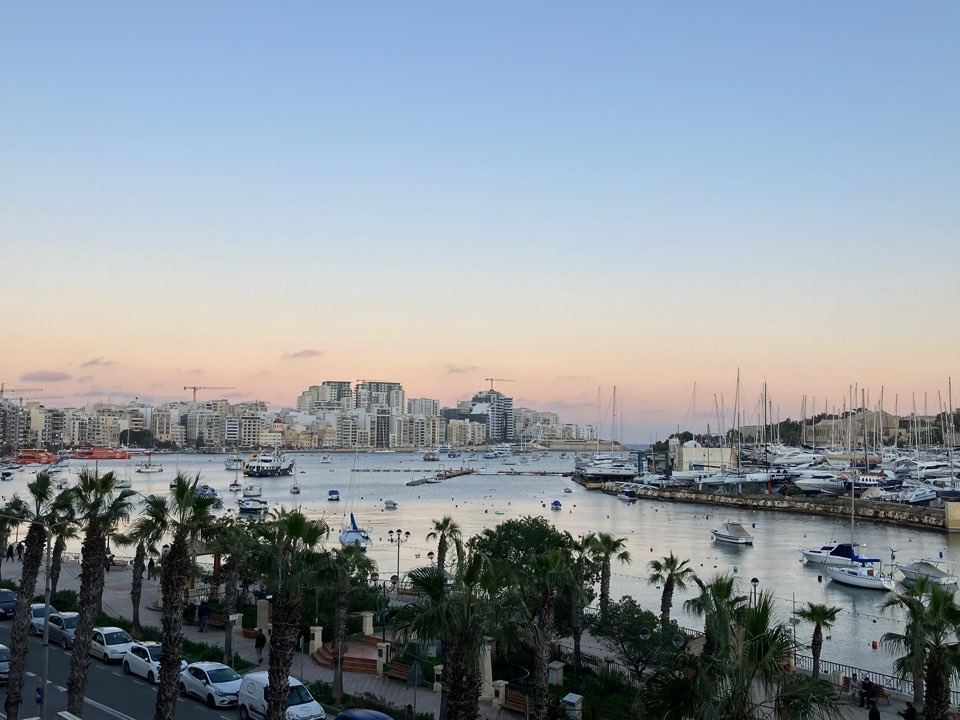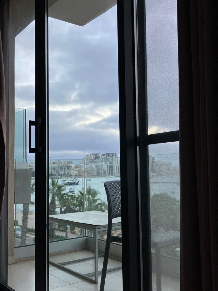 <Valletta view Apartments by ST Hotels>는 그지라 곳곳에 몇 개의 건물에 숙소를 가지고 있는 듯했다. 체크인 카운터가 있는 호텔에서 나와 걸어서 몇 분 거리에 있는 다른 건물로 안내를 받은 것이다. 1층에 스타벅스가 있는 건물 3층이었다. 카드키를 사용해서 안으로 들어가자 상당히 넓은 공간이 쾌적한 느낌으로 다가왔다. 예약사이트 사진보다도 훨씬 넓은 크기에 먼저 놀랐고, 무엇보다도 발코니 창문 너머로 펼쳐진 전망에 놀랐다. 슬리에마 앞바다가 한눈에 펼쳐지는 절경이 거기에 있었기 때문이다.
