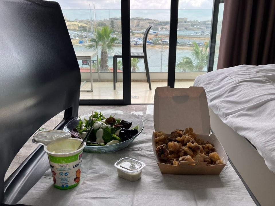 "우와! 좋다!"를 연발하며 내부도 여기저기 둘러봤다. 호텔에서 운영하는 아파트형 숙소였는데 침실이 두 개에 화장실/욕실도 두 개, 그리고 거실과 주방이 모두 갖춰진 숙소였다. 심지어 세탁기도 갖춰져 있었고, 주방에는 이런저런 식기들도 갖춰져 있었는데, 다만 세제와 수세미는 없었다. 대신 호텔처럼 매일 청소를 해주었다. 비록 숙소의 시설이 4, 5성급 호텔에 비할 바는 물론 아니었다. 하지만 사실 다른 것들은 그다지 눈에 들어오지 않았다. 전망 하나만으로도 충분히 행복해졌기 때문이다. 덕분에 우리는 평소 여행할 때에 비해 상대적으로 많은 시간을 숙소에서 멍을 때리며 보냈다. 맛있는 음식을 포장해서 발코니에서 먹기도 하고 침대에 엎드려 책을 보기도 했다. 몰타에 머물기로 결정하기를 정말 잘 했다는 생각이 들게 만드는 숙소였고, 몰타는 정말 아늑하고 아름다운 곳이구나 하는 인상을 심어준 숙소였다.