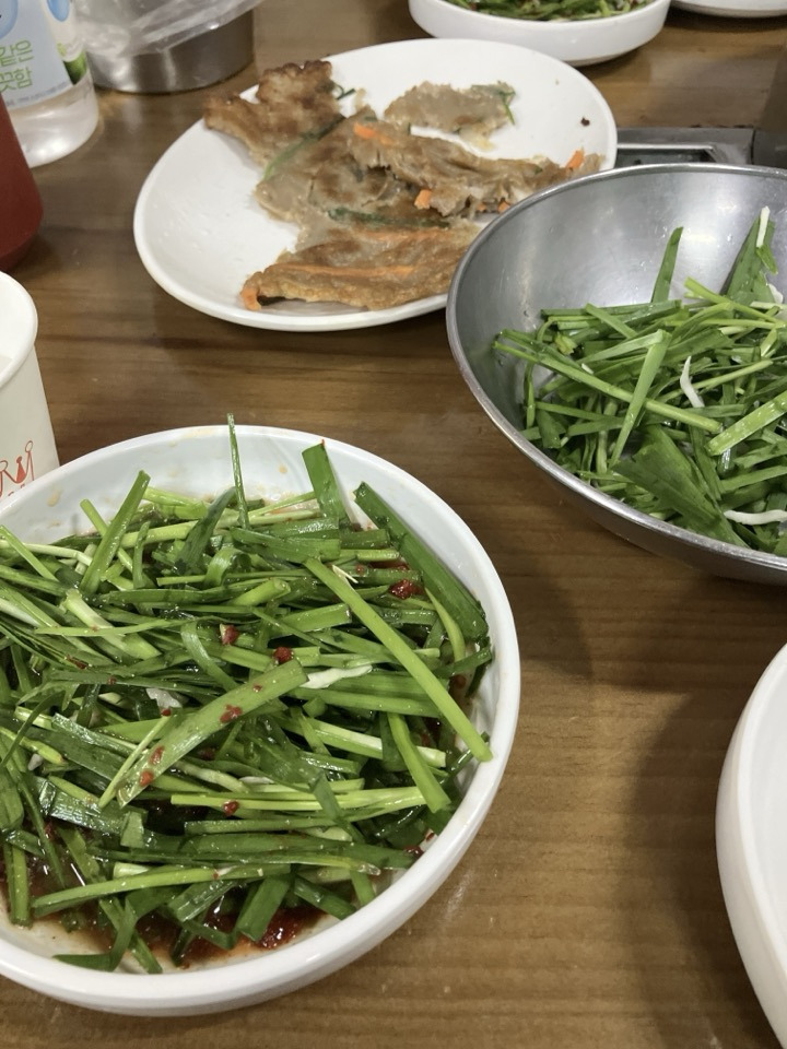 내부는 오랜 역사답게 정겨운 분위기가 강했다. 커다랗게 쓴 메뉴판에 비해 단촐한 메뉴판(사진을 못 찍었네?). 우리는 4명이었기 때문에 닭 한 마리 반을 주문했다. 반찬은 단촐했지만 바로 구운 전이 나와서 좋았다. 어느 정도 끓여서 나온 닭한마리는 떡만 익으면 바로 먹을 수가 있었는데, 떡이 금방 익기 때문에 오래 기다리지 않아도 됐다. 닭한마리의 국물은 깔끔한 편이라서 추운날씨에 따뜻하게 먹을 수 있었고, 닭고기는 부추를 덜어 소스에 찍어먹으니 맛있었다. 닭한마리를 먹는 방법이 거의 정해져 있었지만 누구라도 좋아할 만족스러운 곳이었다.