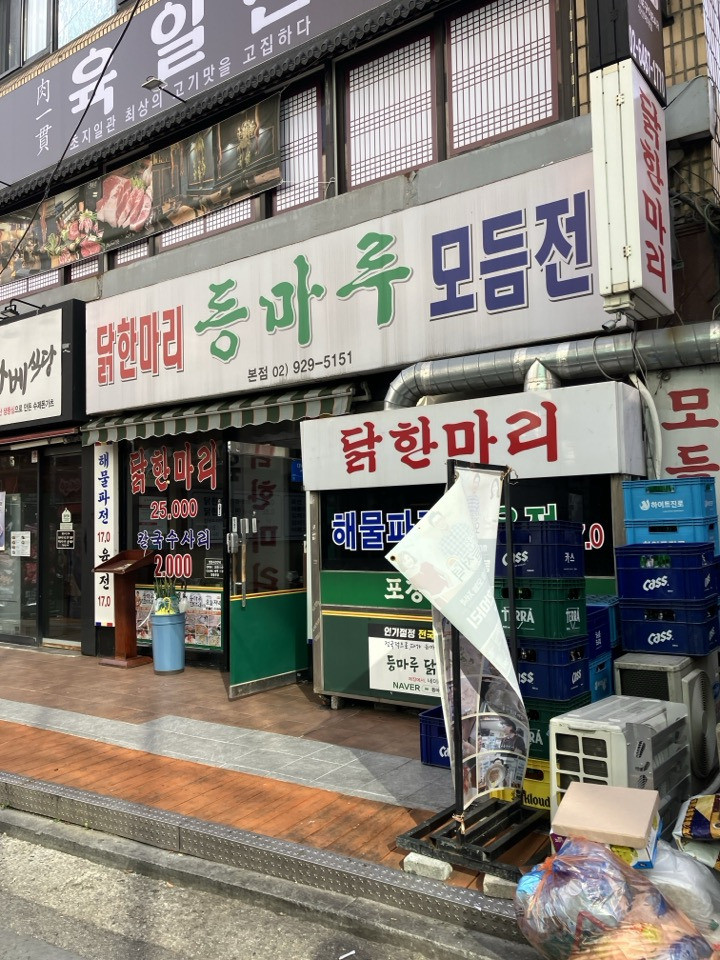 날씨에 따라 생각나는 메뉴들이 있는데, 추워지기 시작하면 아무래도 따뜻한 음식이 떠오르기 마련이다. 주말 점심 식사를 하기 위해 찾아갔던 성신여대 앞 <등마루>. 우리는 닭한마리를 먹으러 찾아갔지만, 간판을 보니 닭한마리와 더불어 모듬전이 주력 메뉴인 것 같았다. 어디 TV프로그램에 나왔다고 하는데, TV 소개 이전부터 성신여대 앞에서는 꽤 유명한 식당이라고 같이 갔던 지인이 말해주었다.