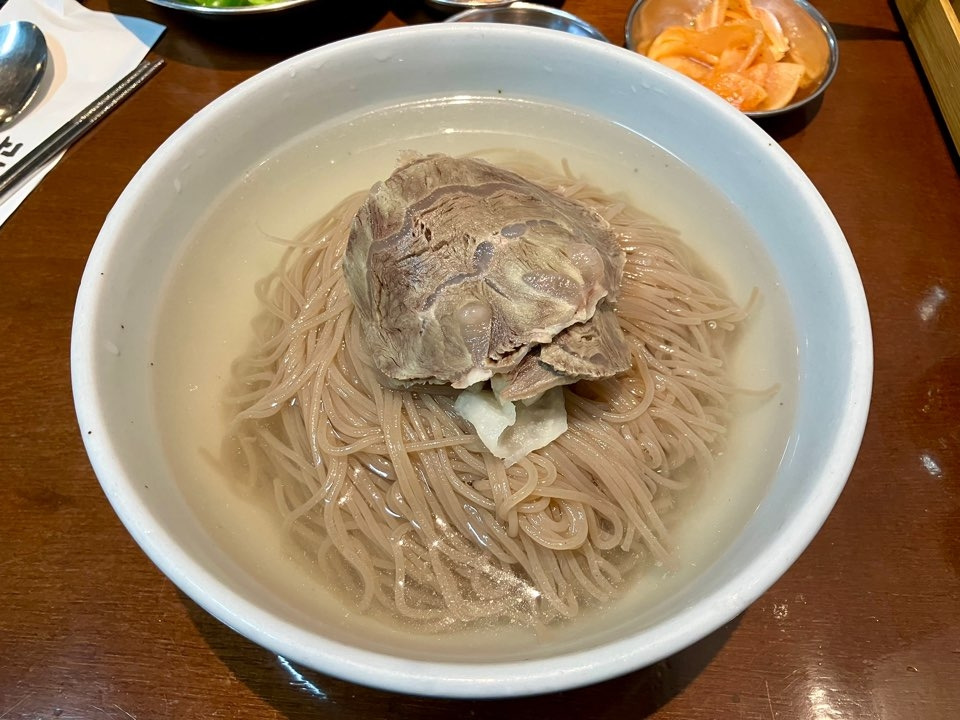 다시 방문했을때에는 평양냉면을 먹어봤는데, 고명으로 올라간 고기 안에 배추와 무 절임이 예쁘게 들어가 있었다. 평양냉면의 심플한 맛을 표현한 디자인이라고 할까? (누가 디자이너 아니랄까봐 직업병스러운 감상) 평양냉면에서 가장 중요한 국물 맛은 국밥에 비해서도 더 슴슴한 맛이었다. 개인적으로 진미냉면과 의정부 평양냉면을 좋아하는 나에게는 조금은 못 미치는 맛이랄까? 다시 <광화문국밥>에 가면 국밥을 먹을 것 같다.