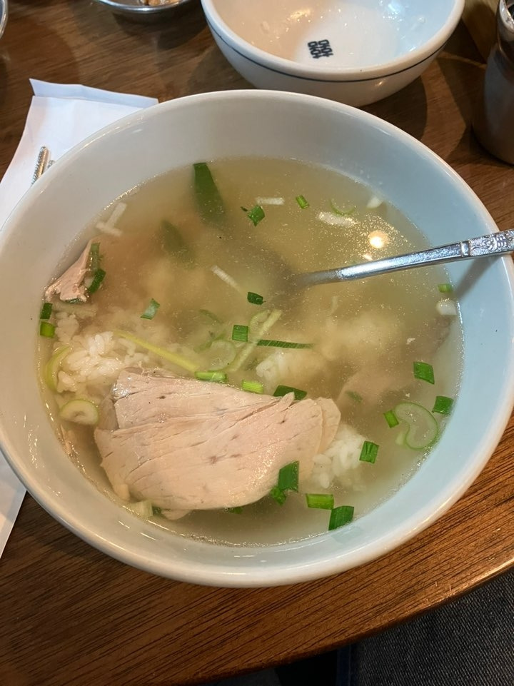 메뉴는 국밥 전문점답게 단촐했는데 가장 기본인 국밥으로 주문했다. 이 곳의 국밥은 마치 평양냉면이 연상되는 맑은 국물에 살코기 부분의 돼지고기가 들어있었다. 밥은 토렴해서 나오는 방식이 아니라 따로 가져다 주는 방식이었다. 국밥과 함께 먹기 좋은 반찬 몇 가지가 함께 나왔는데, 국밥 반찬으로는 아주 익숙한 반찬들이었다. 맑은 돼지국밥 국물은 처음부터 끝까지 아주 깔끔하다는 느낌을 받았다. 국물이 담백하고 깨끗해서 자극없이 계속 먹을 수 있었고, 밥을 말면 탁해지긴 했지만 또 그 나름의 맛이 있어 좋았다. 평소에 국물을 그리 많이 먹는 편은 아닌데, 이 곳에서는 달랐다. 깨끗하게 비우진 않았어도 평소보다 많은 국물을 맛 볼만큼 괜찮았다.