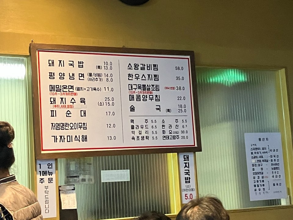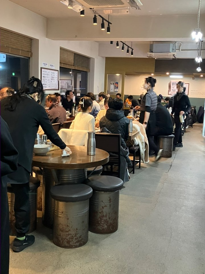 이미 여러 차례 미슐랭 빕구르망에 이름을 오른데다가 방송에도 여러 번 소개가 된 집이라 유명해질대로 유명해진 이 식당은 점심시간에도 저녁시간에도 많은 손님들이 몰린다. 평소 웨이팅하는 식사를 즐기지 않지만 광화문 일대에서 점심시간에 웨이팅 없이 밥을 먹는 일은 쉬운 일이 아니기 때문에 기다려서 먹어보기로 했다. 대략 15분쯤 기다렸을까 가게 안으로 입장할 수 있었다. 들어간 가게 안은 생각보다 좌석이 많았는데, 바 테이블자리까지 알차게 준비되어 있어서 많은 손님들이 몰려도 아주 오래 기다리거나 하지 않아도 될 듯 했다. 그리고 국밥과 냉면이라는 메뉴 특성상 테이블 회전율도 빠른 것 같았고.