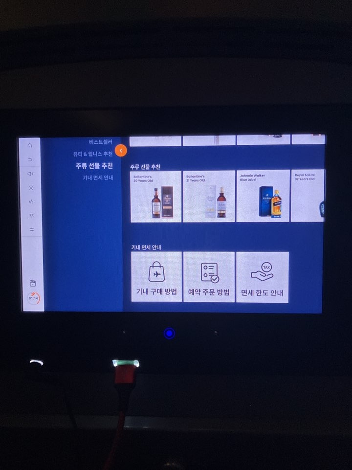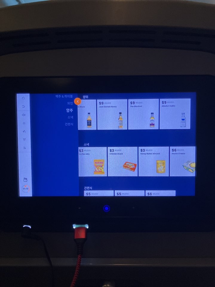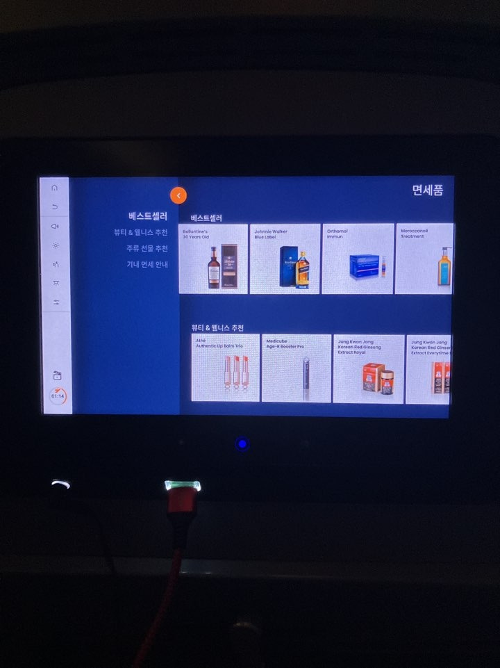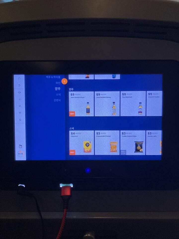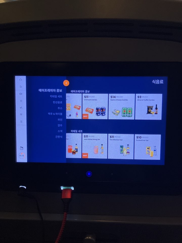 짧은 연휴가 끼어 있어서 그랬는지 공항에도 비행기에도 사람들이 제법 많았다. 덕분에 이래저래 기다리는 시간도 길었지만 일단 비행기에 올라타고 보니 그런 기다림은 다 잊혀진다. 기내 좌석은 3-3-3 배열이었고, 좌석 앞에는 개인 모니터가 설치되어 있었다. 창문은 덮개가 있는 게 아니라 버튼으로 밝기 조절이 가능한 최신형(?)이었다. 에어 프레미아가 자랑하는 좌석 간격도 확실히 LCC 비행기들보다는 더 넓어서 쾌적하고 좋았다. 이륙 전에 승무원들이 개인 이어폰을 나눠주었고, 이륙 후에는 커피(혹은 물)와 쿠키를 나눠주었다. 갈 때에는 모카 청크칩 쿠키, 돌아올 때에는 크랜베리 치아시드 쿠키였다. 쿠키의 크기가 꽤 커서 간단한 요기는 될 정도였다. 커피와 쿠키 등 제공되는 먹거리 외에 추가 주문을 해서 먹을 수도 있었는데, 개인 모니터에서 메뉴를 확인하고 주문을 할 수 있었다. 먹거리의 종류는 간단한 것들로 다양한 편이었고, 가격은 다른 저가 항공사들과 비슷한 가격대였다.