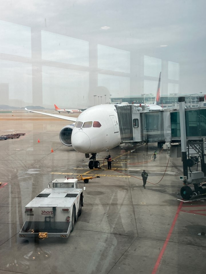 인천공항에서 나리타공항으로 연결되는 항공권의 경우, 개인적으로는 특가로 나오는 걸 제외한다면 근래에는 대략 30만 원 전후를 기준으로 삼고 있다. 그리고 이번 도쿄 여행에서 머물렀던 가마타 지역은 도쿄 전체를 놓고 본다면 나리타 공항과는 서로 반대편에 있는 반면, 하네다 공항에서 내리면 정말 바로 옆 동네이다. 그러나 최적의 동선이 되어줄 김포-하네다 구간은 50-60만 원 정도이니 가난한 여행자로서는 별다른 선택의 여지가 없을 수밖에. 우리가 이번에 올라탄 비행편은 에어 프레미아(Air Premia)였다. 인천-나리타 왕복 28만 원대에 위탁수화물 15kg이 포함이었으니, 연휴가 낀 날짜 치곤 꽤 괜찮은 가격이라고 생각했다. 일단 여타의 저가 항공사들과 가격 차이가 거의 없었다. 그럼에도 에어 프레미아는 HSC(Hybrid Service Carrier) 항공사이니, 꽤나 합리적인 가격에 프리미엄 좌석을 제공한다고 한다. HSC는 LCC(Low Cost Carrier)와 FSC(Full Service Carrier)의 중간 등급으로 보면 될 것 같다. 나리타 공항으로 향하는 에어 프레미아 YP 731편은 인천에서 오전 8시 45분에 출발하고 나리타에 11시 20분에 도착한다. 오전 비행편이었기 때문에 새벽같이 일어나 인천공항에 가야 했지만, 공항에 도착하고 나서는 탑승동까지 가지 않고 30번대 게이트에서 탈 수 있다는 점도 좋았다. 도쿄에서 돌아오는 YP 732편은 원래 일정이 오후 12시 30분 출발 오후 3시 15분 인천 도착이었으나, 미리 5시간 정도 지연이 되어 오후 5시로 변경된다는 연락을 받았다. 듣기로는 에어 프레미아는 항공 편수가 많지 않아서 지연이 종종 발생한다고 했다. 개인적으로는 뭐, 마지막 날 도쿄에서 느긋하게 체크아웃하고 천천히 공항으로 이동할 수 있어서 기뻤던 지연이었다.